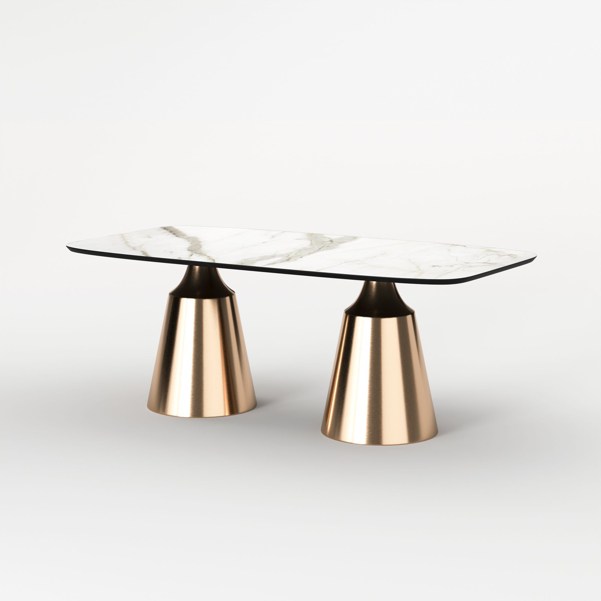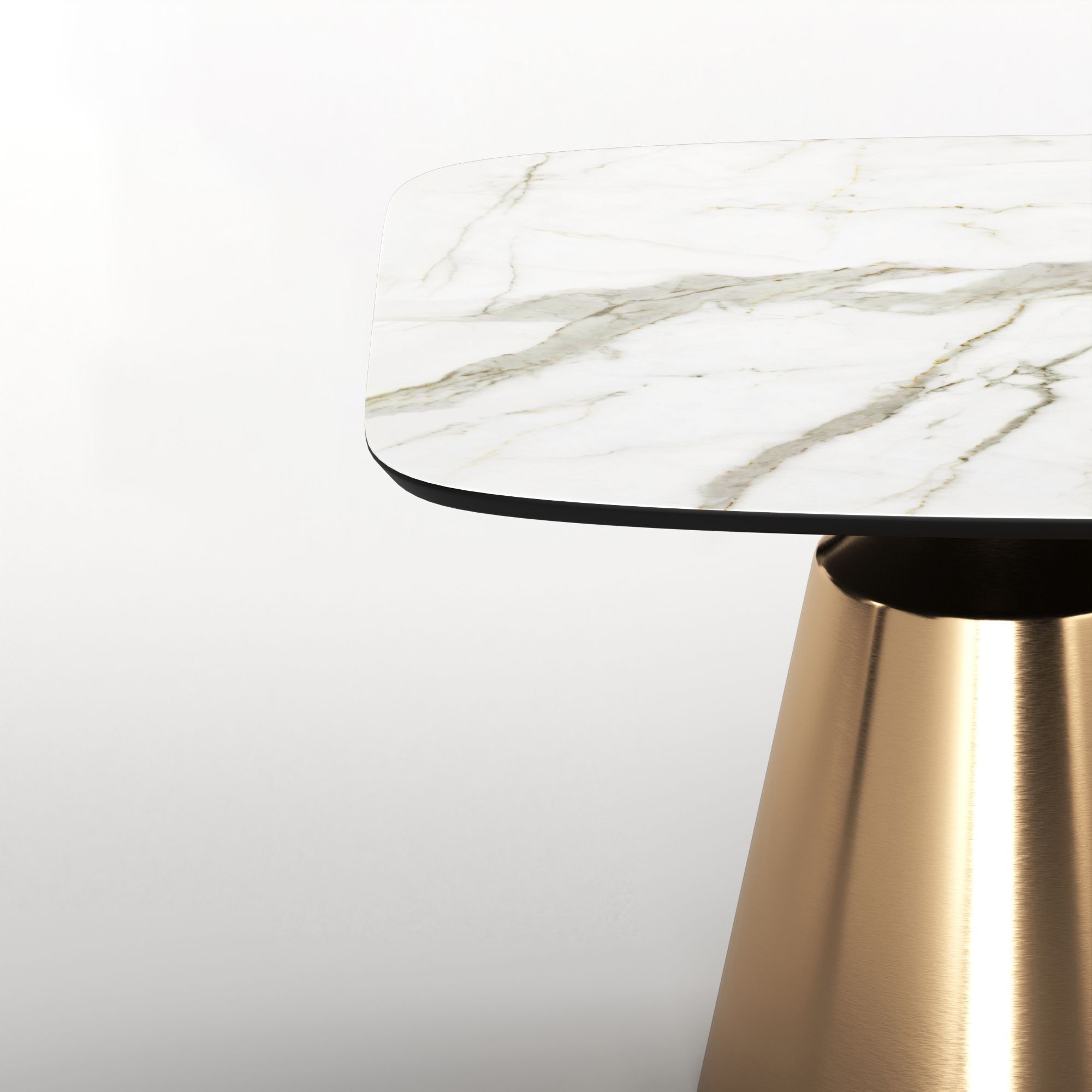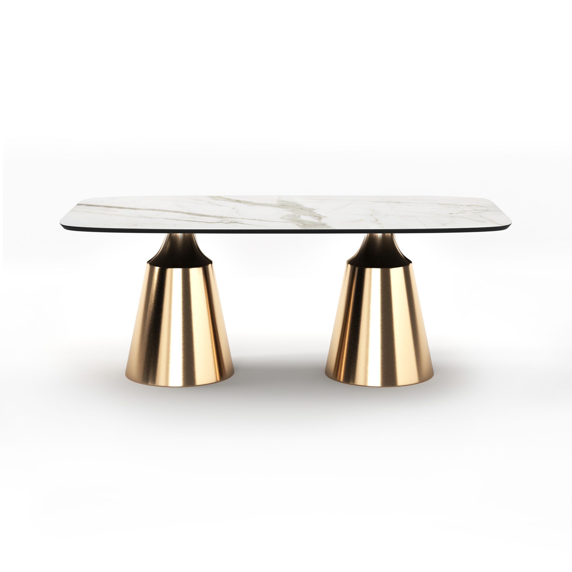 Коллекция обеденных столов Lucas - одна из самых популярных. Включает в себя различные варианты и формы обеденных столов, для персонализации своей собственной дизайнерской столовой. Основание состоит из центрального конусного ствола, выполненного из нержавеющей стали, массивный внешний вид которого облегчается металлическим покрытием нитрид титана цвет золото и соединением с узкой и отступающей столешницей, как бы напоминающей длинную элегантную шею, поддерживающую столешницу. Коллекция включает круглый, овальный, прямоугольный керамический стол Lucas с матовым или глянцевым покрытием и версию со столешницей из шпона. Столешница выполнена из МДФ 19 мм, керамика толщиной 6 мм. Ее органический и натуральный внешний вид подчеркивает путь бренда к экологичному дизайну, который создается из натуральных материалов с использованием методов с низким энергопотреблением.