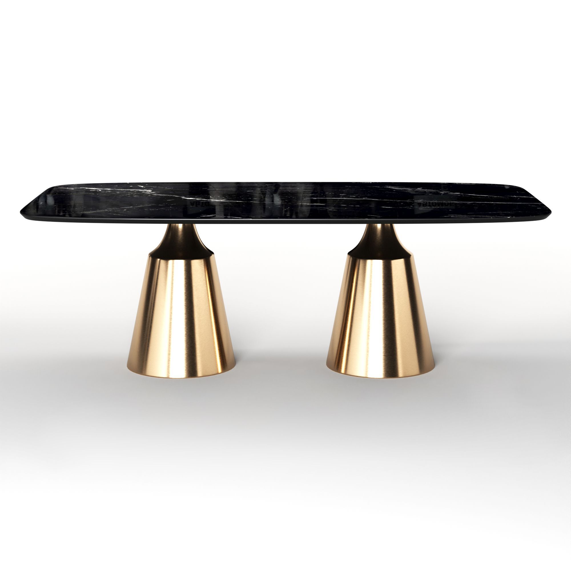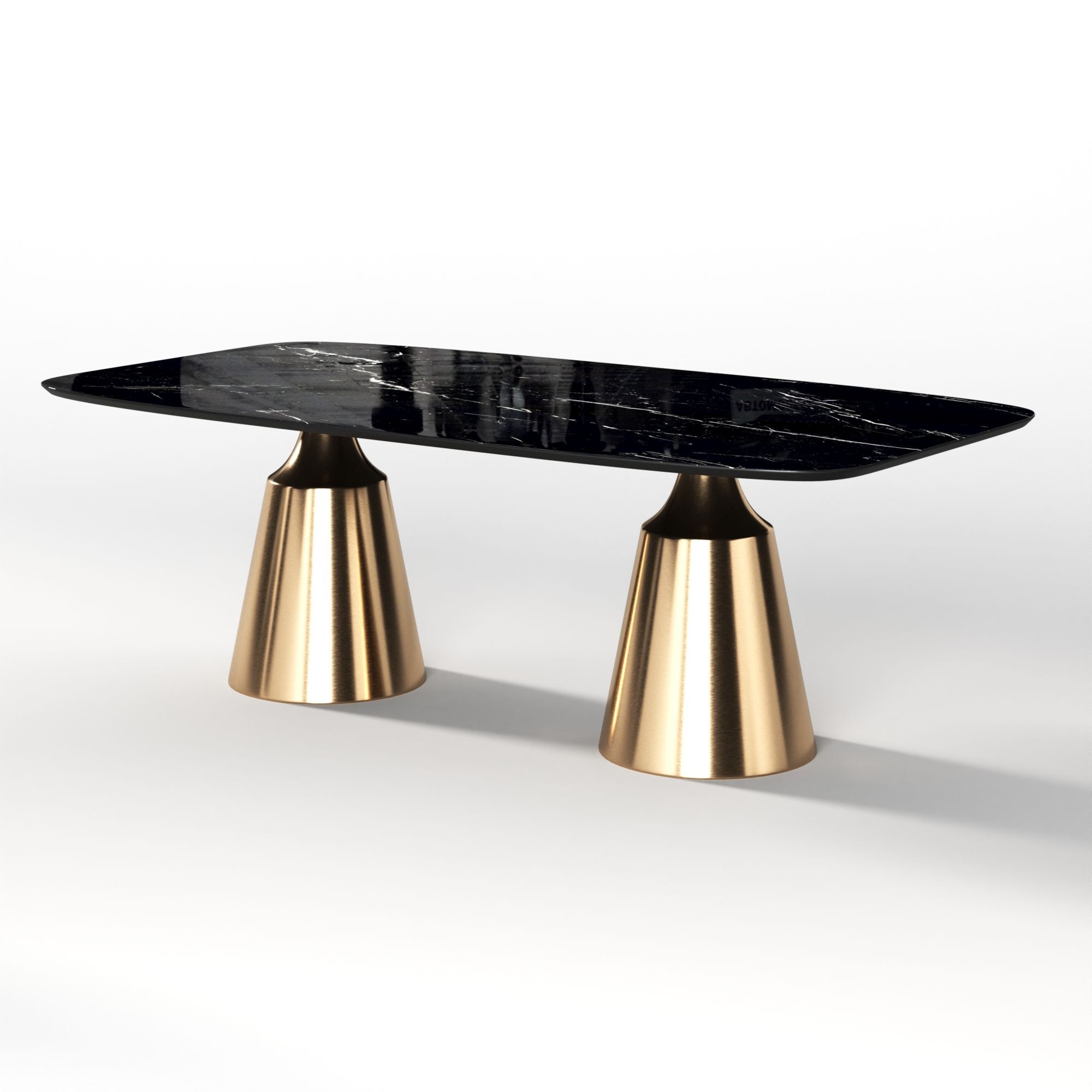Коллекция обеденных столов Lucas - одна из самых популярных. Включает в себя различные варианты и формы обеденных столов, для персонализации своей собственной дизайнерской столовой. Основание состоит из центрального конусного ствола, выполненного из нержавеющей стали, массивный внешний вид которого облегчается металлическим покрытием нитрид титана цвет золото и соединением с узкой и отступающей столешницей, как бы напоминающей длинную элегантную шею, поддерживающую столешницу. Коллекция включает круглый, овальный, прямоугольный керамический стол Lucas с матовым или глянцевым покрытием и версию со столешницей из шпона. Столешница выполнена из МДФ 19 мм, керамика толщиной 6 мм. Ее органический и натуральный внешний вид подчеркивает путь бренда к экологичному дизайну, который создается из натуральных материалов с использованием методов с низким энергопотреблением.