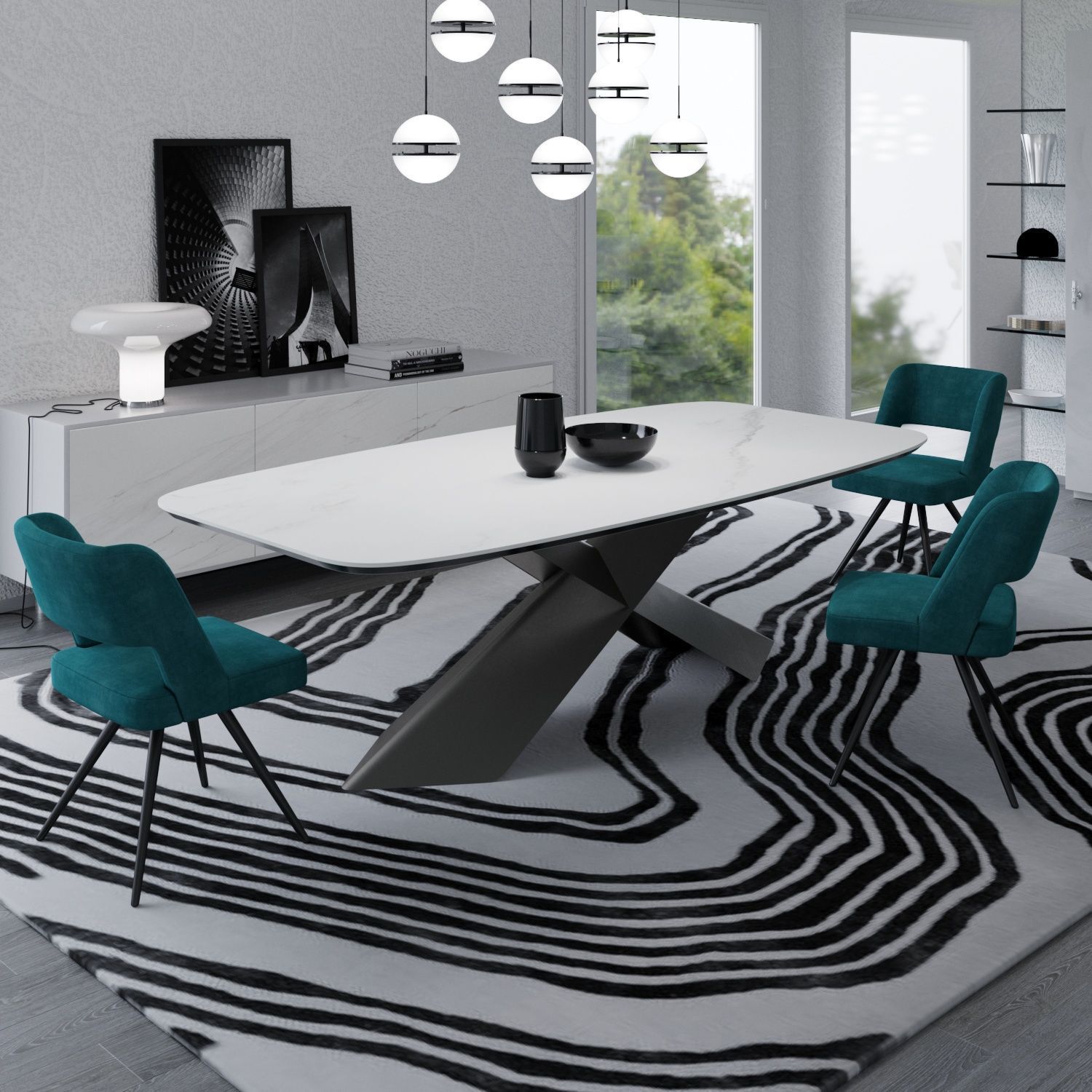 Овальный стол Tyler выглядит смело и оригинально. Черные металлические ножки являются центральным элементом, притягивают внимание своей необычной изогнутой формой и четкой геометрией. При этом опоры обеспечивают непревзойденную устойчивость. Столешница из керамики устойчива к перепадам температуры и химическому воздействию. Её легко чистить, она очень гигиенична, так как не впитывает жидкости и не выделяет вредных веществ. Рекомендуем использовать салфетки и подставки для посуды, чтобы на дольше сохранить идеальный внешний вид столешницы. Любые загрязнения необходимо протирать мягкой тряпкой и не использовать абразивные чистящие средства! Опоры сделаны из металла – крепкий и надежный материал. Тщательная проверка качества изделий осуществляется на всех этапах производства: от подбора материалов и комплектующих до проверки готового изделия перед отправкой.