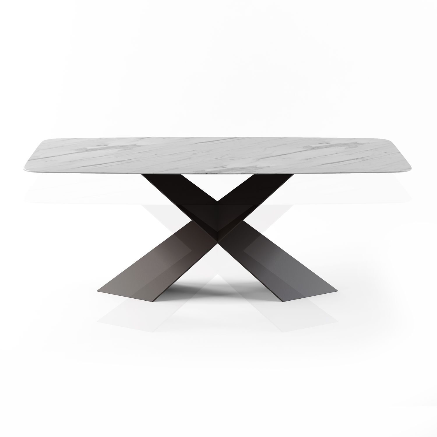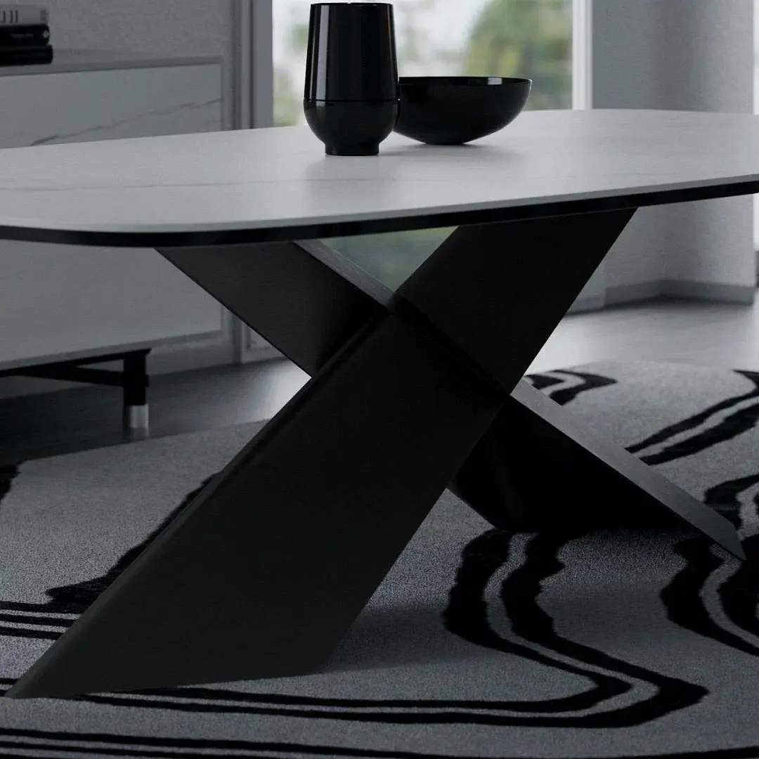 Овальный стол Tyler выглядит смело и оригинально. Черные металлические ножки являются центральным элементом, притягивают внимание своей необычной изогнутой формой и четкой геометрией. При этом опоры обеспечивают непревзойденную устойчивость. Столешница из керамики устойчива к перепадам температуры и химическому воздействию. Её легко чистить, она очень гигиенична, так как не впитывает жидкости и не выделяет вредных веществ. Рекомендуем использовать салфетки и подставки для посуды, чтобы на дольше сохранить идеальный внешний вид столешницы. Любые загрязнения необходимо протирать мягкой тряпкой и не использовать абразивные чистящие средства! Опоры сделаны из металла – крепкий и надежный материал. Тщательная проверка качества изделий осуществляется на всех этапах производства: от подбора материалов и комплектующих до проверки готового изделия перед отправкой.