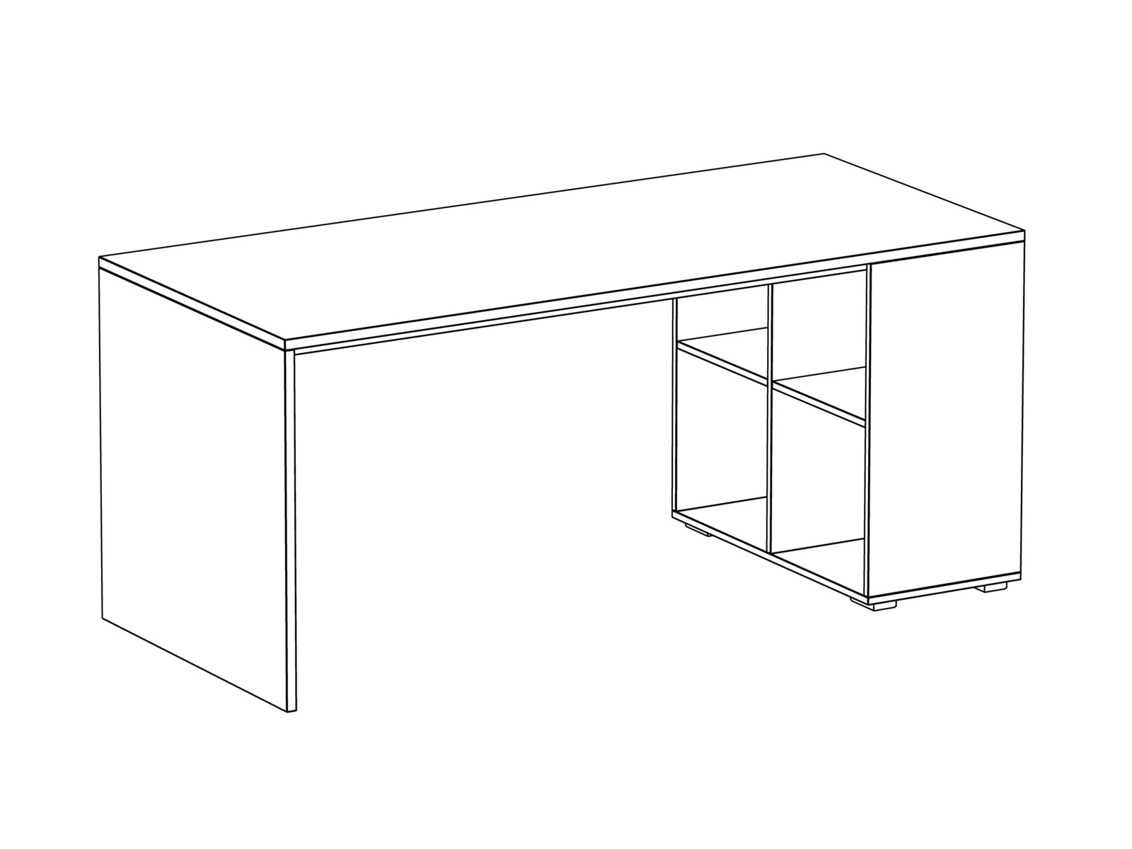 Стол рабочий со встроенным отделением из 4 полок. Комбинируется с навесным модулем с 6 полками.
