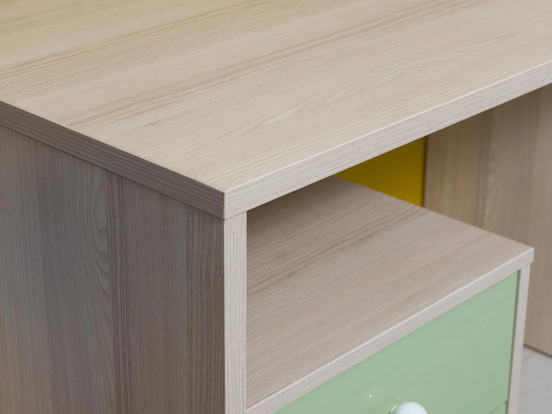 Play — коллекция модульной мебели для детской в спокойных оттенках светлого дерева с локальным добавлением ярких элементов. Естественные формы и цвета подружатся с любой стилевой темой. Подойдет как для дошкольников, так и для подростков. Изделия отвечают главным критериям детской мебели: безопасны, устойчивы, надёжны и эстетичны. Соблюдены экологические показатели, использована ЛДСП класса эмиссии Е1 и Е0,5 — для детской мебели с герметично закрытыми кромками. Из большого количества модулей вы можете спроектировать индивидуальное решение, исходя из потребностей и площади помещения.