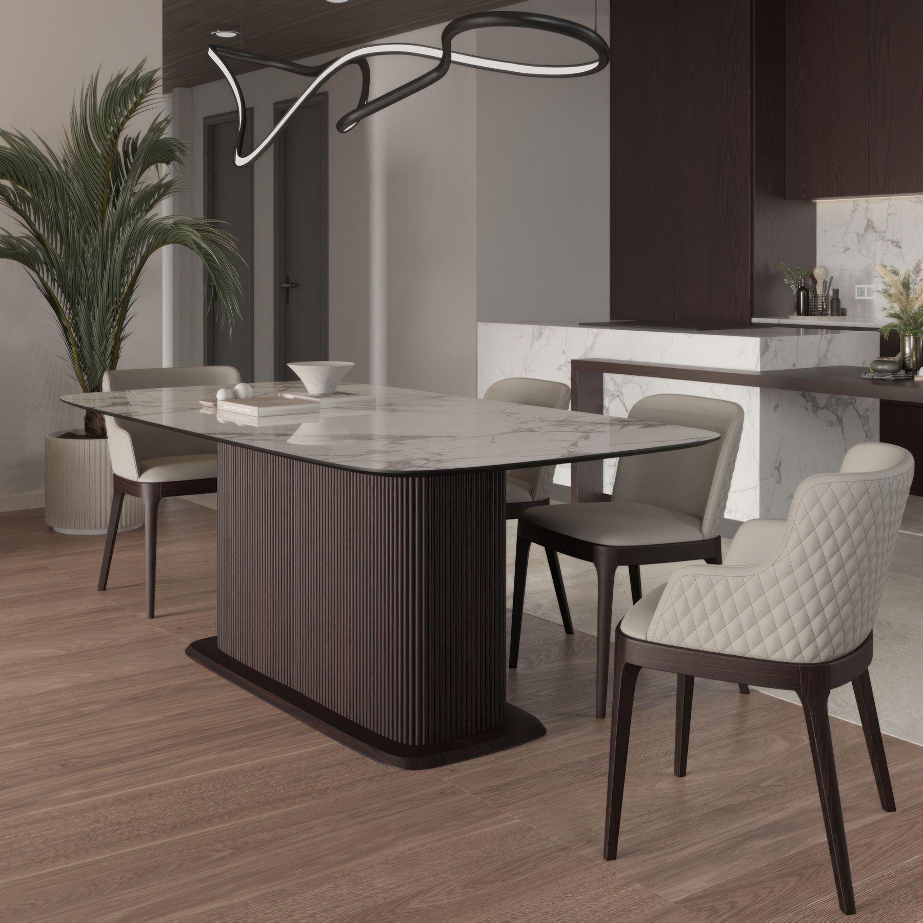 Стол прямоугольный Denver 180, керамика глянцевая, опора дерево