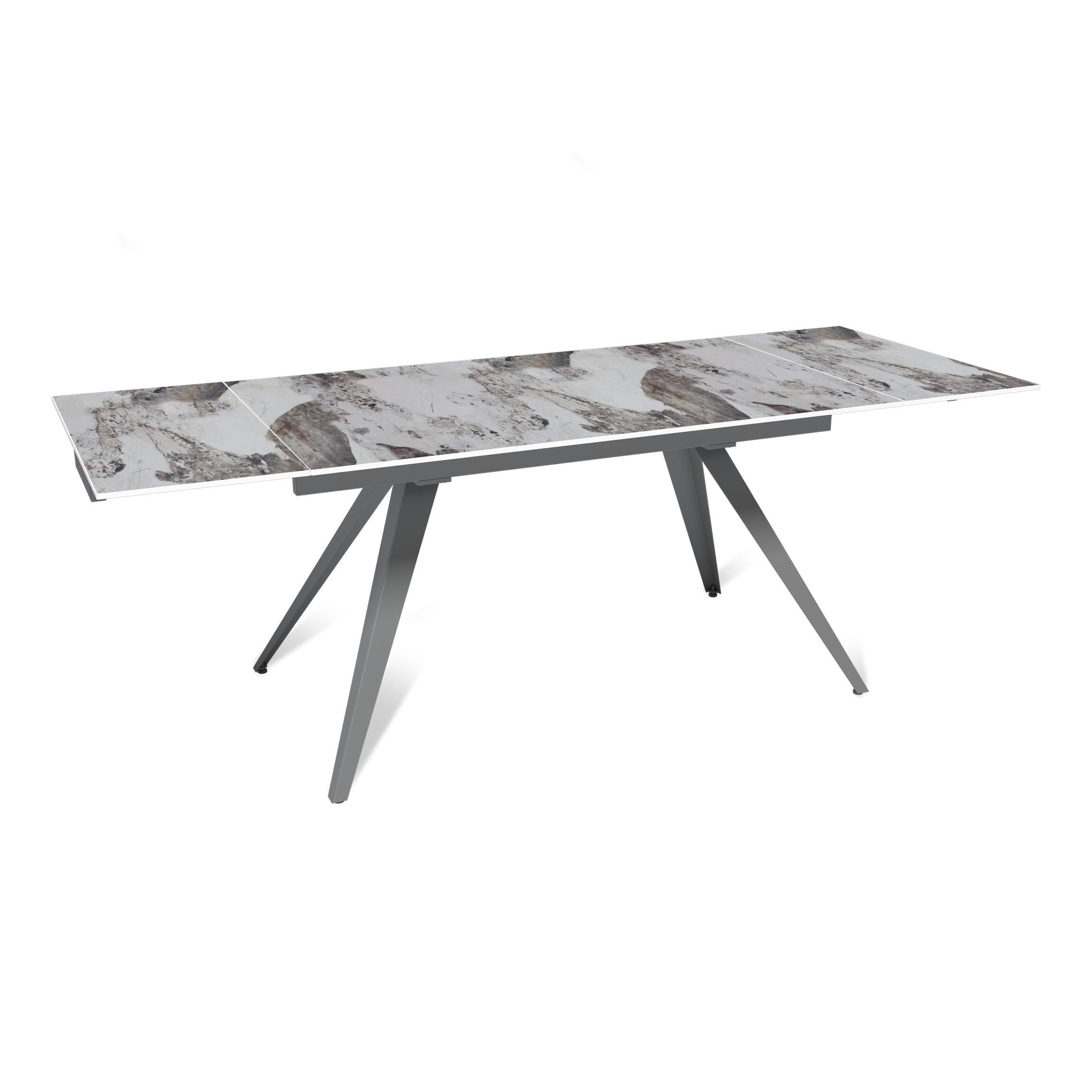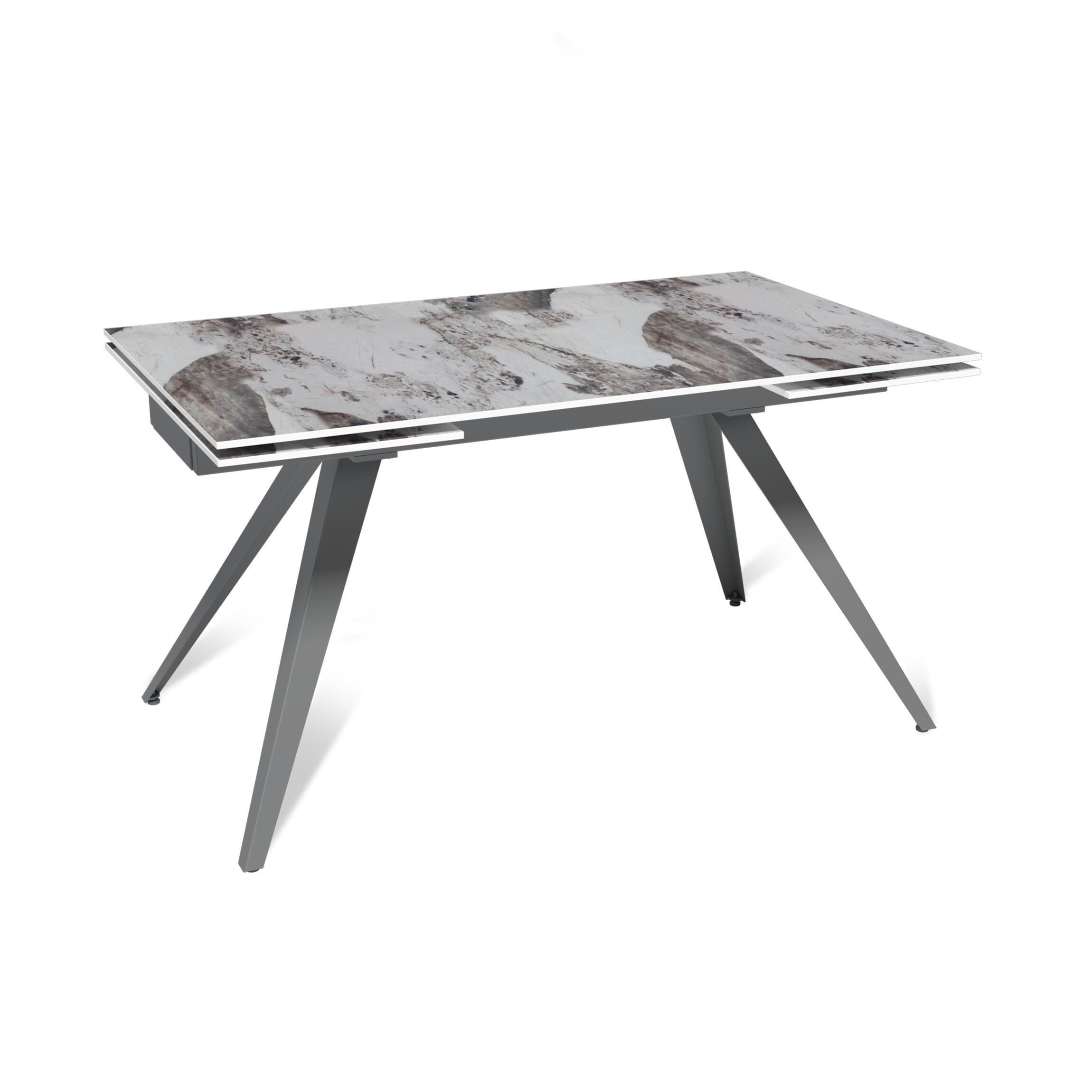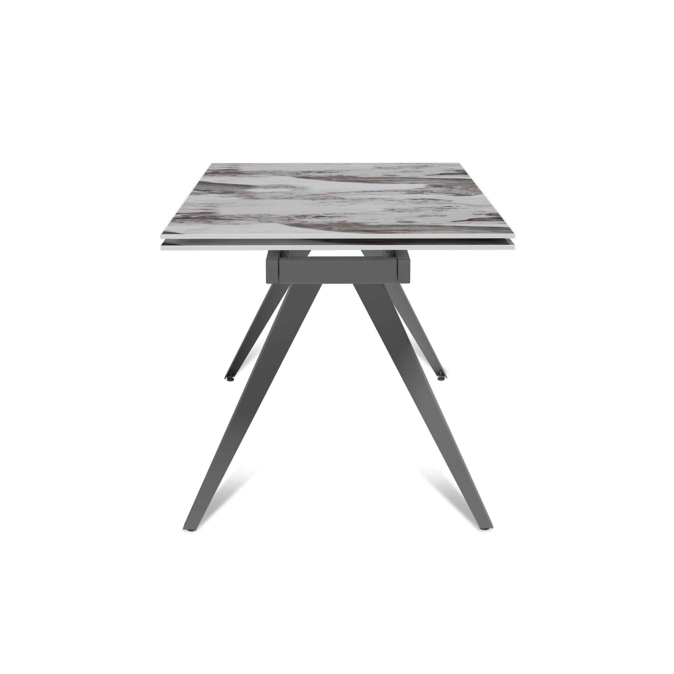 Стол с керамической столешницей «Asti» представляет собой стильное и практичное решение для кухни или столовой. Поверхность столешницы, выполненная из керамики, обеспечивает прочность, легкость в уходе и устойчивость к царапинам и температурным изменениям. Стильное металлическое основание дарит стабильность и надежность, дополняя современный дизайн стола. Данный стол идеально подходит для семейных обедов и встреч с друзьями, создавая уютную и стильную обстановку в вашем доме. Столешница модели «Asti» может быть как компактной по площади так и просторной благодаря наличию механизма трансформации.