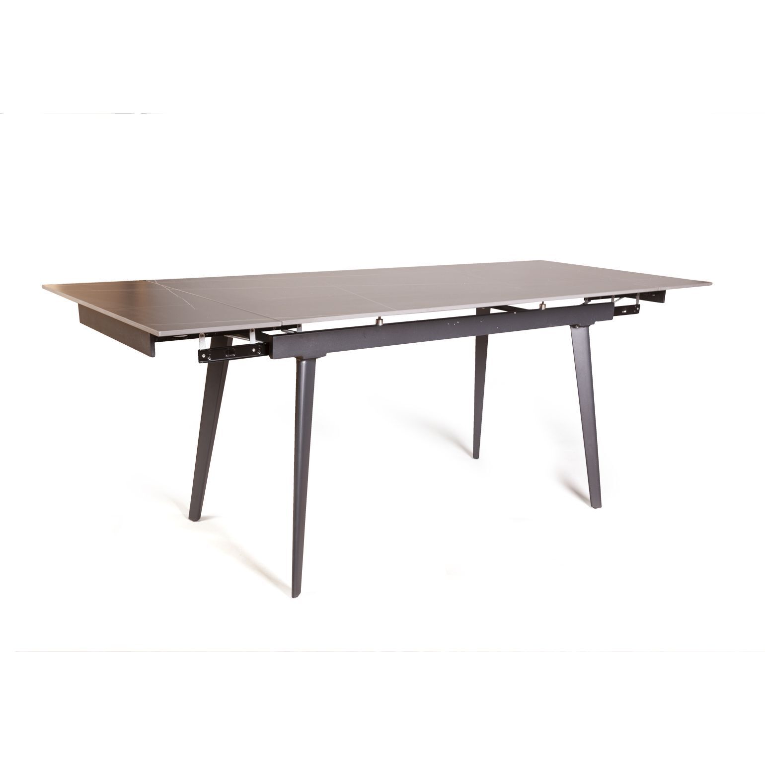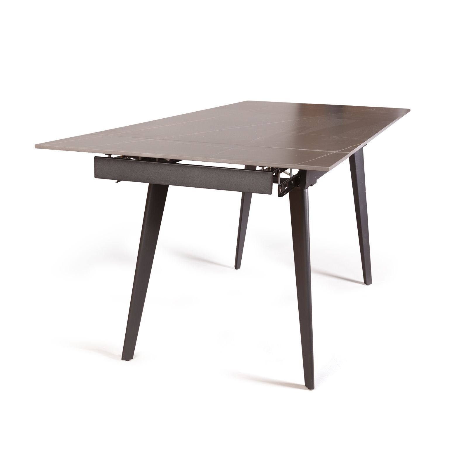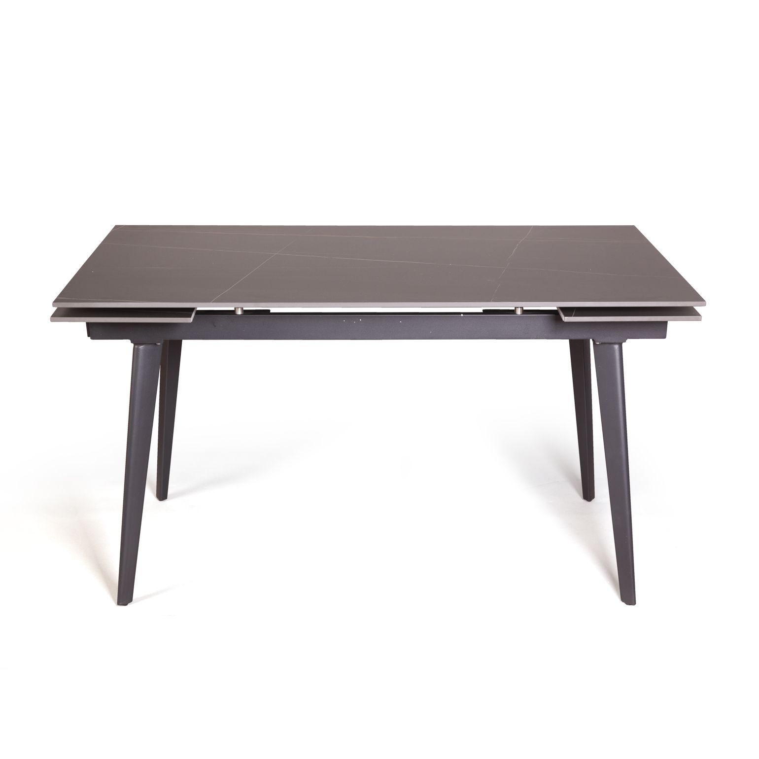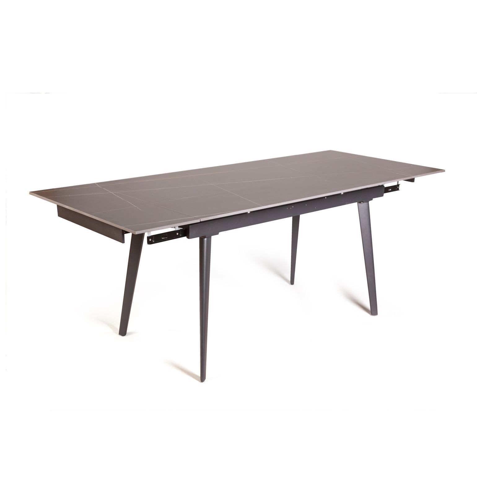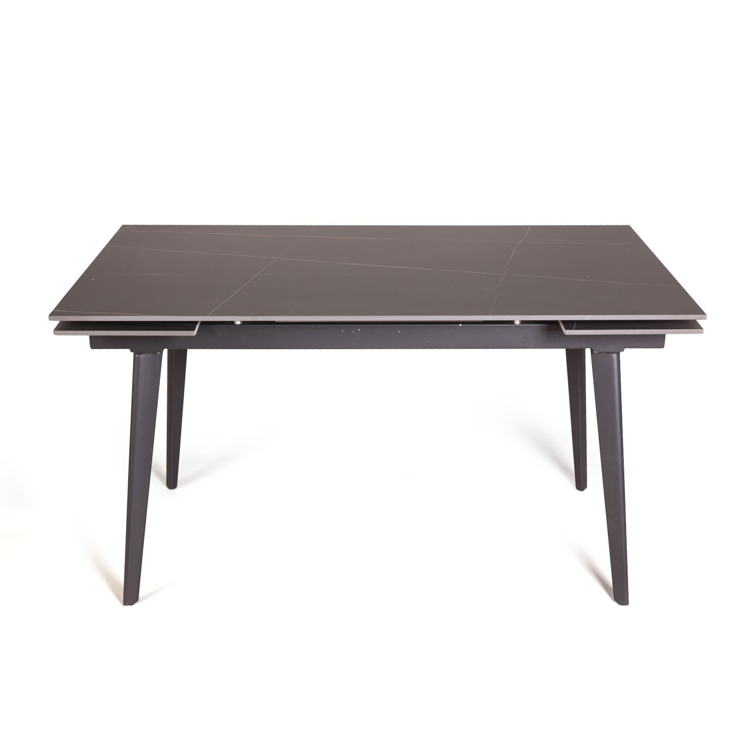 Керамическая столешница с рисунком мрамор идеально сочетается с остроконечными опорами, выполненными в черном цвете. Толщина столешницы 12 мм. (прослужит вам долгое время и не потеряет свой внешний вид). Стол смотрится легко, изящно, стильно и, конечно, станет украшением любого интерьера.