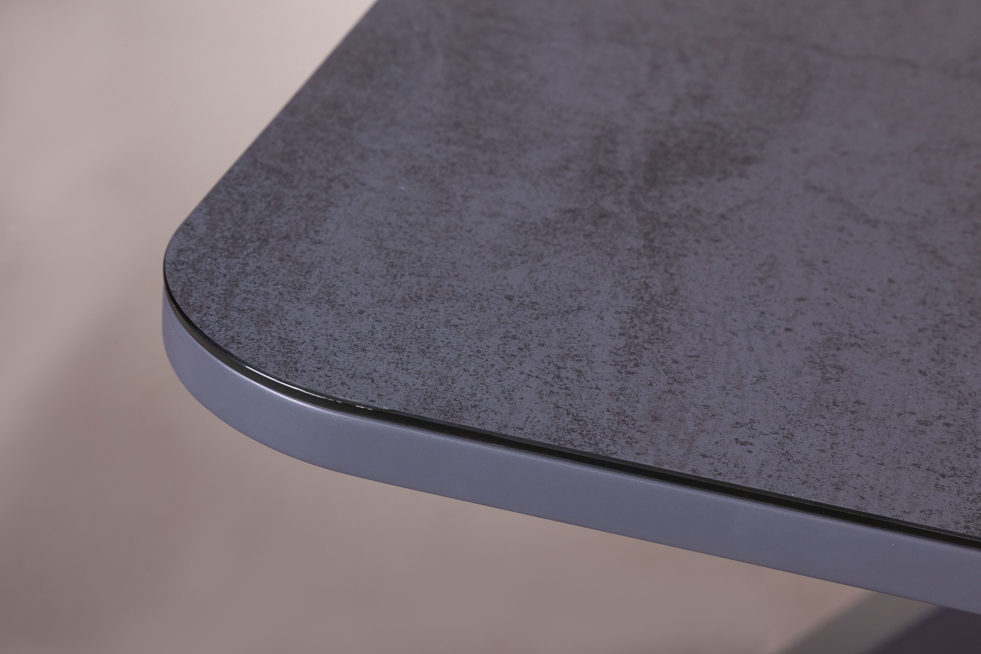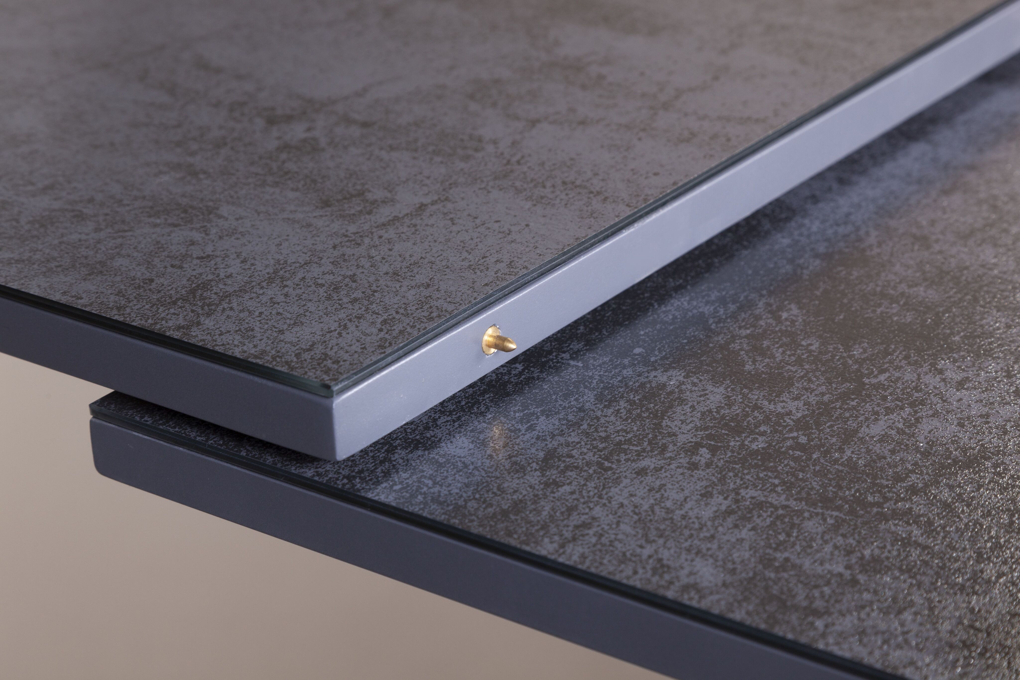 Черная матовая столешница выполнена из высокопрочного глазурованного стекла в сочетании с МДФ выкрашенным в темный цвет. Покрытие глазурью обеспечивает надежную защиту столешницы, что очень практично и гарантирует долгий срок службы стола.