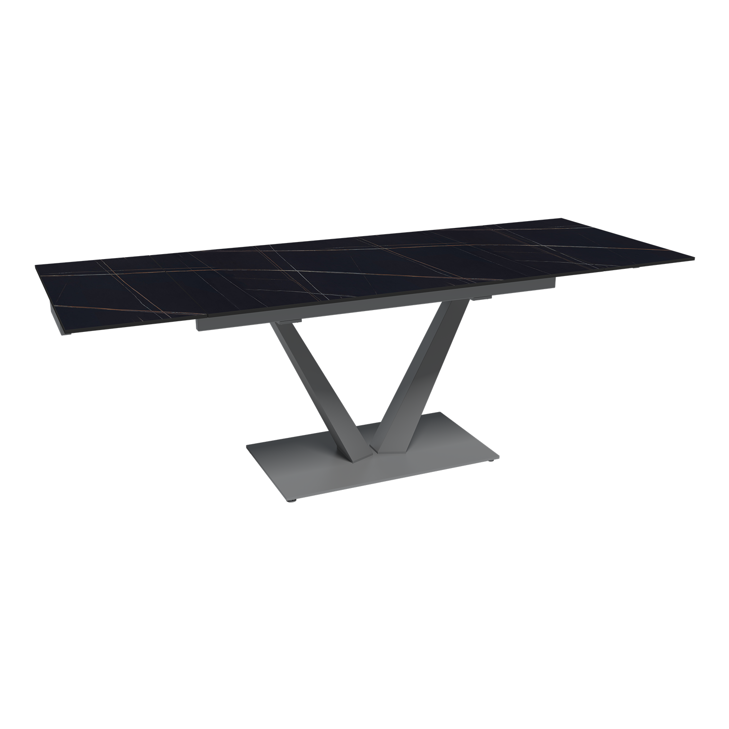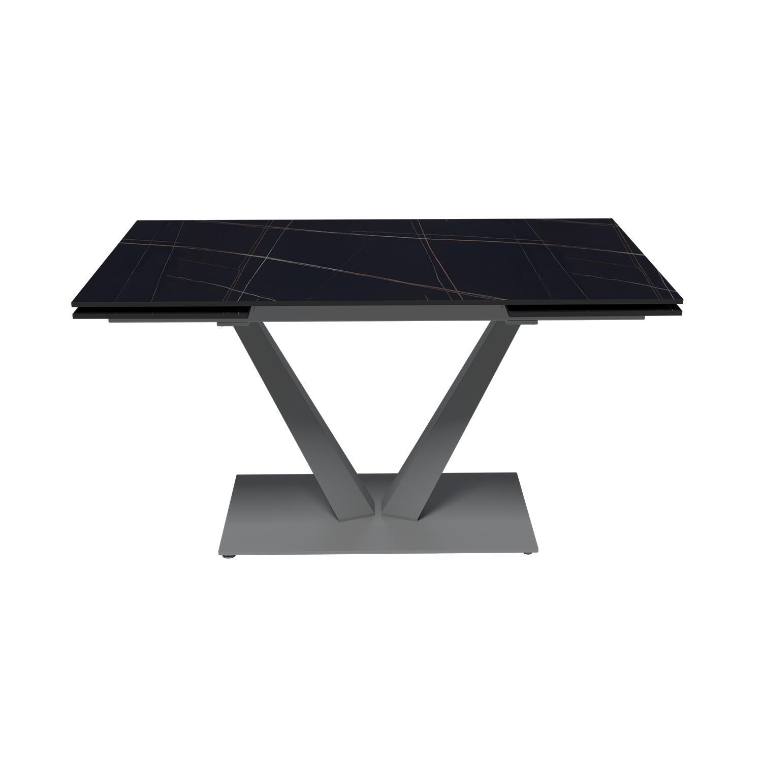 Стол с керамической столешницей «Malibu» представляет собой изысканное и функциональное обеденное место для вашего дома. Поверхность столешницы, выполненная из керамики, обеспечивает прочность, легкость в уходе и устойчивость к царапинам и температурным изменениям. Стильное металлическое основание дарит стабильность и надежность, дополняя современный дизайн стола. Данный стол идеально подходит для семейных обедов и встреч с друзьями, создавая уютную и стильную обстановку в вашем доме. Столешница модели «Malibu» может быть как компактной по площади так и просторной благодаря наличию механизма трансформации.