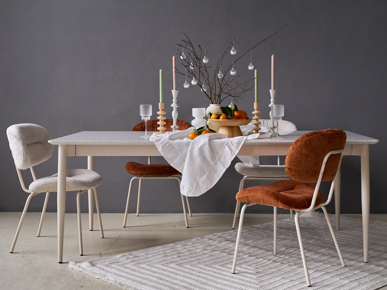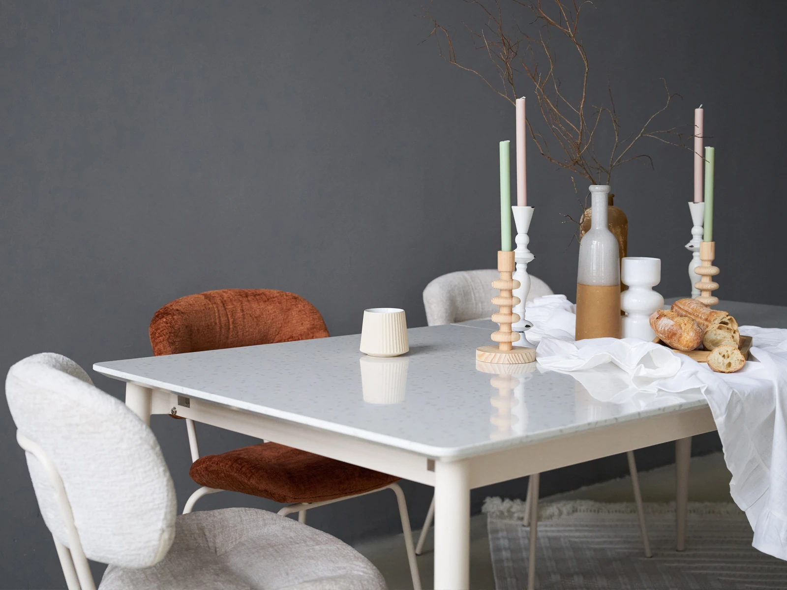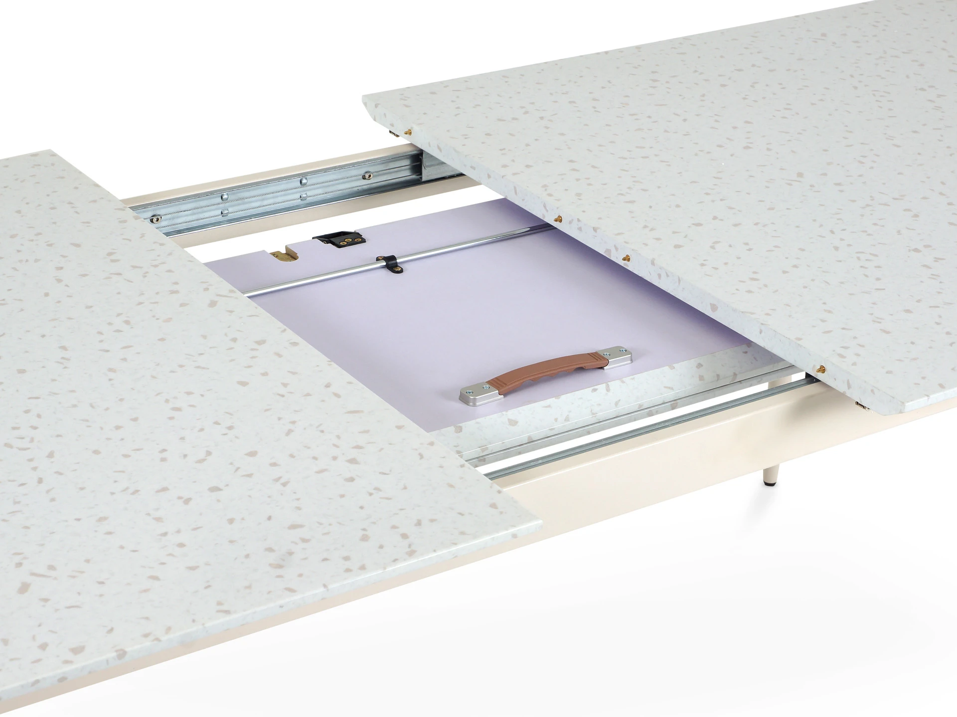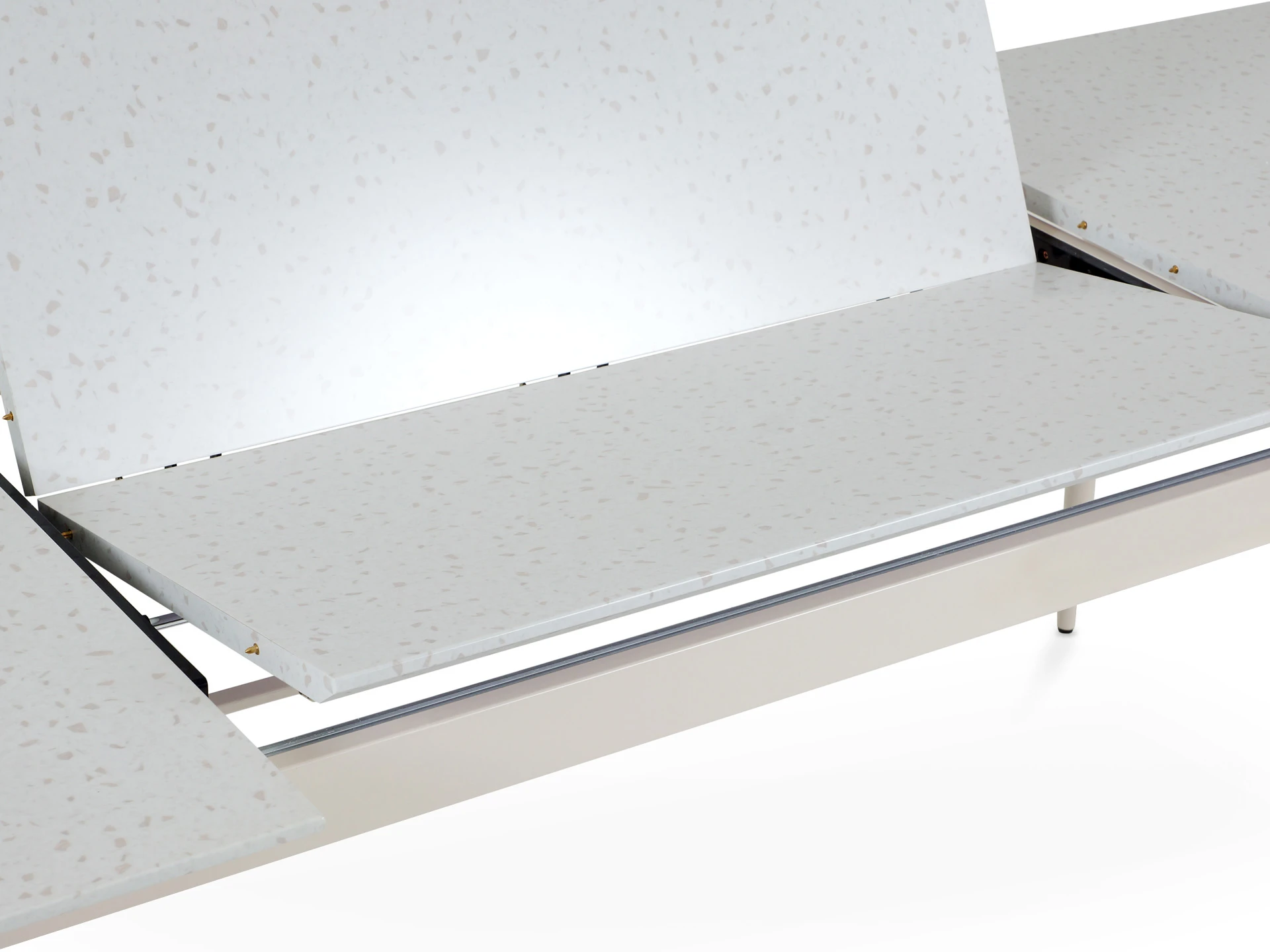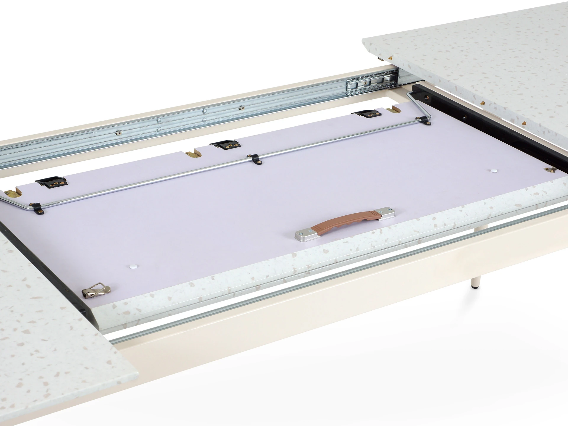 Ножки из металла защищены кремовым порошковым покрытием. Матовая поверхность отвечает за привлекательный внешний вид и высокие технические свойства. Поэтому стол Sigma долго будет радовать вас идеальным состоянием. Его «тихая» выразительность подчеркнёт торжественность праздничных трапез и придаст атмосферность будничным обедам. Благодаря большой площади столешницы за столом может разместиться компания до 8 человек. При использовании раздвижного механизма количество мест увеличивается до 10-12. Чтобы увеличить длину, необходимо раздвинуть противоположные стороны. Механизм отличается бесшумным лёгким ходом. Эксплуатация проходит плавно и без усилий. Минималистичный дизайн универсален, подходит для большинства актуальных интерьеров. Стол Sigma — идеальный вариант для быстрой трансформации пространства под ваши запросы.