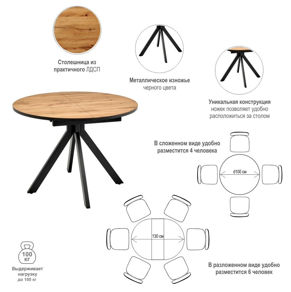 Стол Rudolf круглый раскладной 100-130