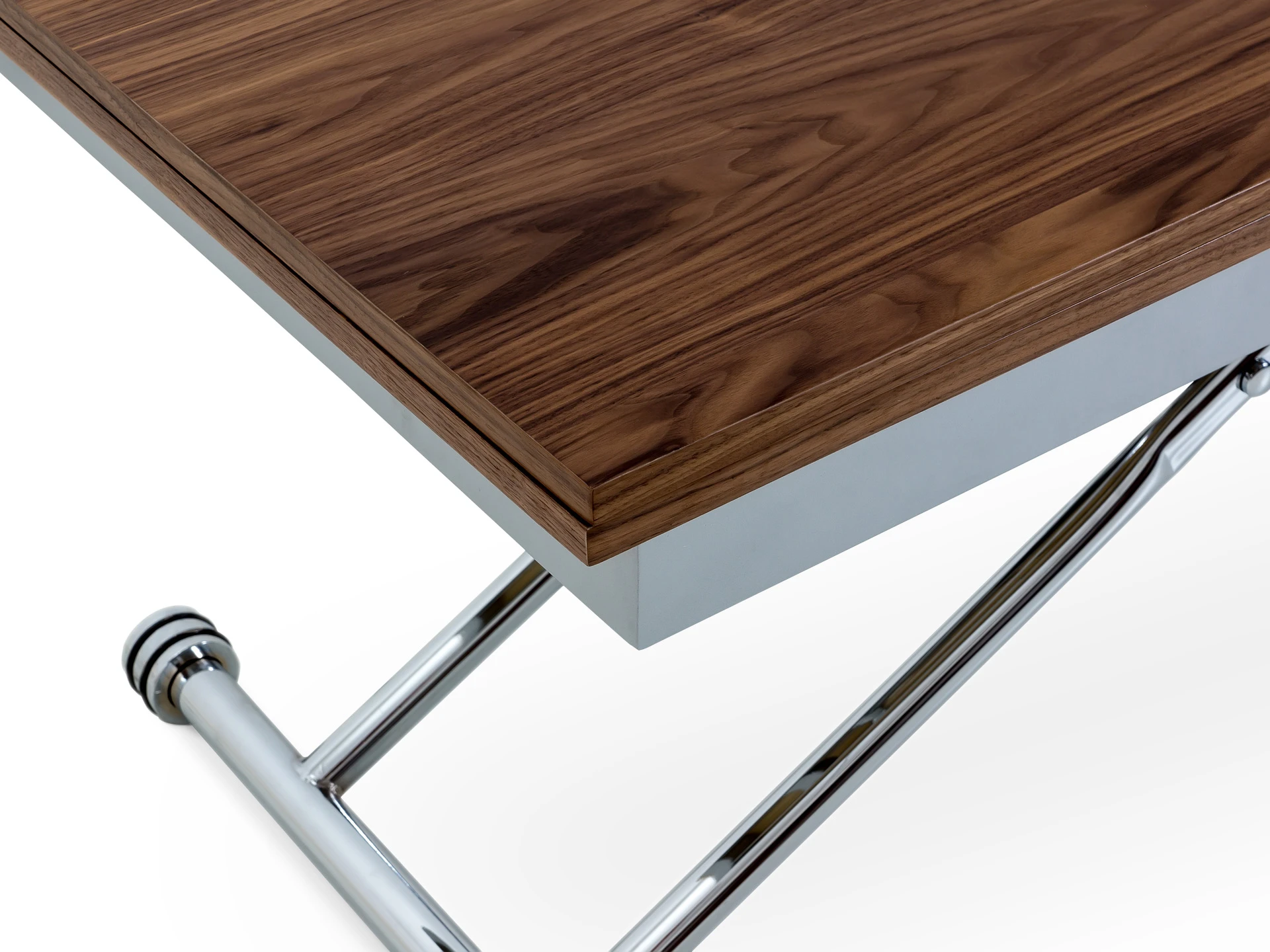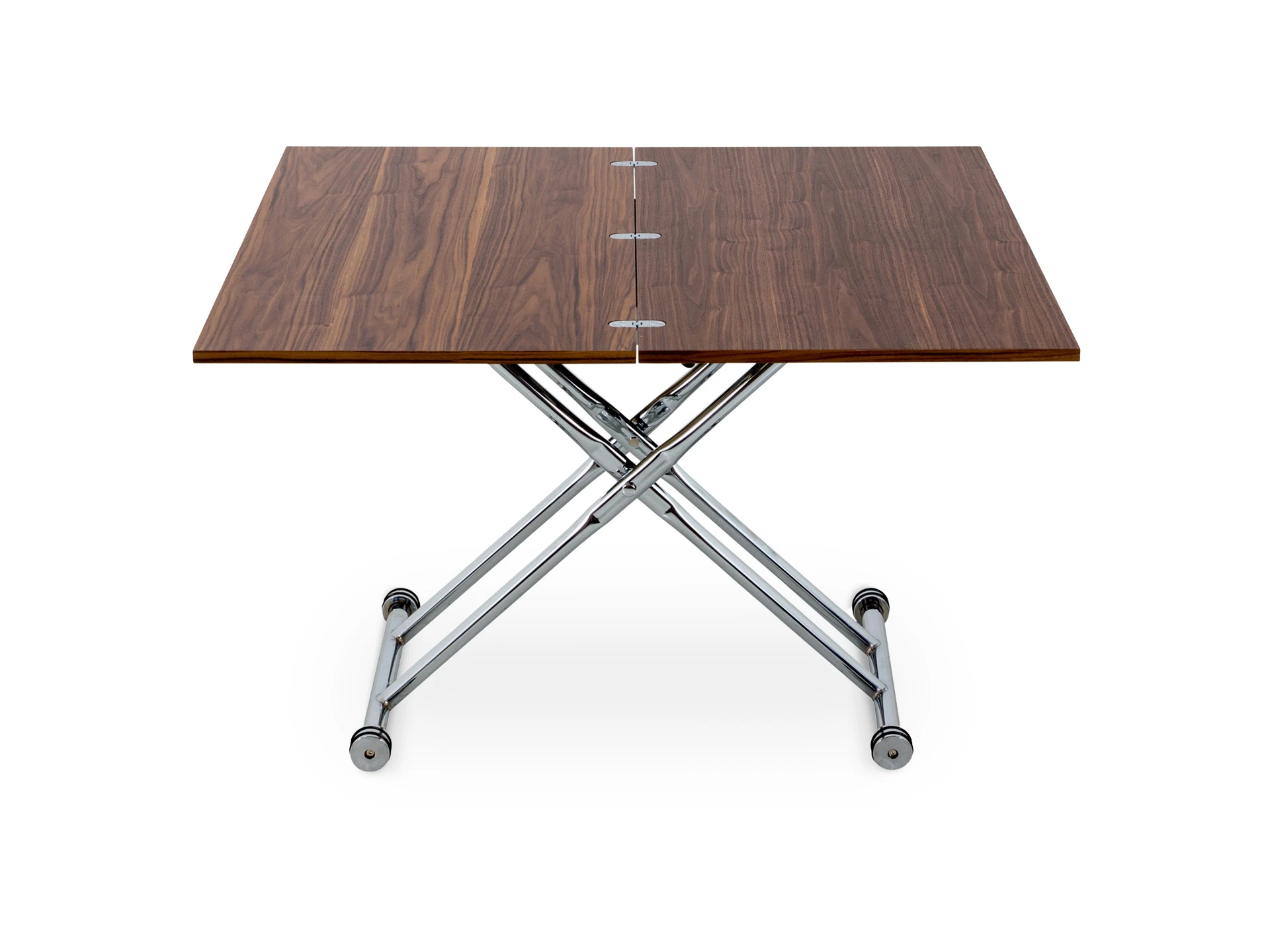 Стол многофункциональный, раскладной, с регулятором высоты. Каркас: металл хромированный . Столешница: МДФ, покрыта шпоном натурального дерева. Толщина столешницы 1,8 см , длина столешницы 114 см, максимальная длина 120 см, ширина в сложенном виде 60 см, ширина в разложенном виде 114 см. Высота 30/79,5см - со сложенной столешницей; 76,5 см - с разложенной столешницей. Наличие подпятников, предохраняющих от царапания пола. Требуется сборка. Размеры упаковки: 123*72*30.