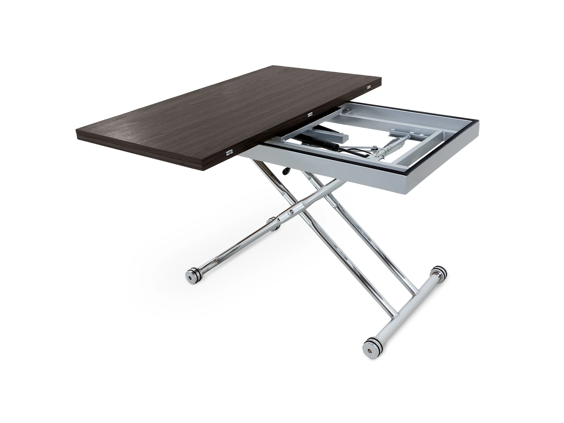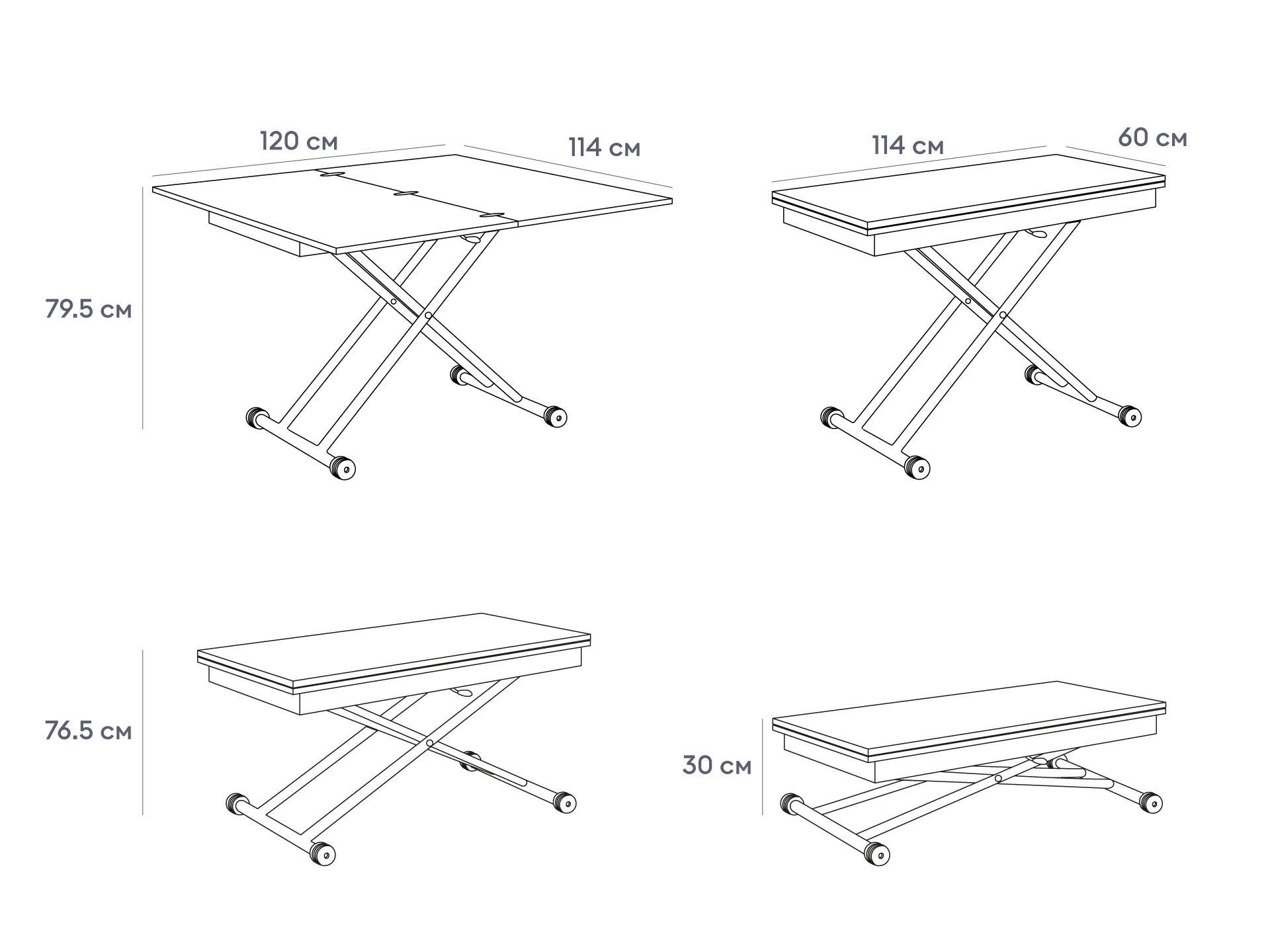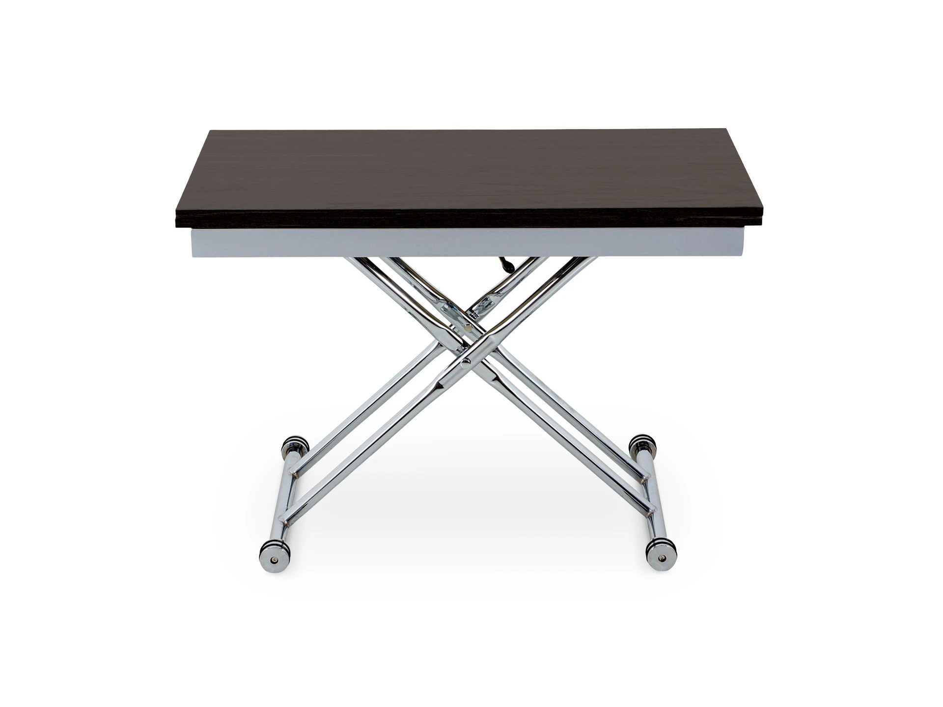 Стол многофункциональный, раскладной, с регулятором высоты. Каркас: металл хромированный . Столешница: МДФ, покрыта шпоном натурального дерева. Толщина столешницы 1,8 см , длина столешницы 114 см, максимальная длина 120 см, ширина в сложенном виде 60 см, ширина в разложенном виде 114 см. Высота 30/79,5см - со сложенной столешницей; 76,5 см - с разложенной столешницей. Наличие подпятников, предохраняющих от царапания пола.