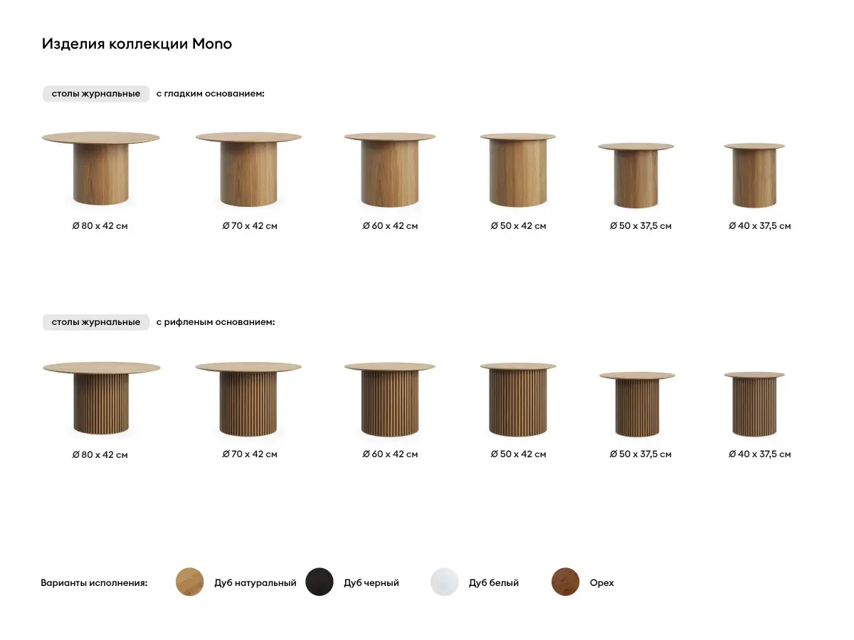 Журнальный столик Mono D 50 состоит из круглой столешницы и цилиндрического основания. Вы можете выбрать модель с геометрическими элементами, создающими эффект «гофрированной поверхности», или вариант с гладким основанием. Материалы каркаса: плита МДФ, облицованная натуральным шпоном. Красивый естественный рисунок, который внесёт в пространство частичку природной энергии. Добавит фактурности и разнообразия. Его плавные формы эстетично дополнят как городские, так и загородные локации.