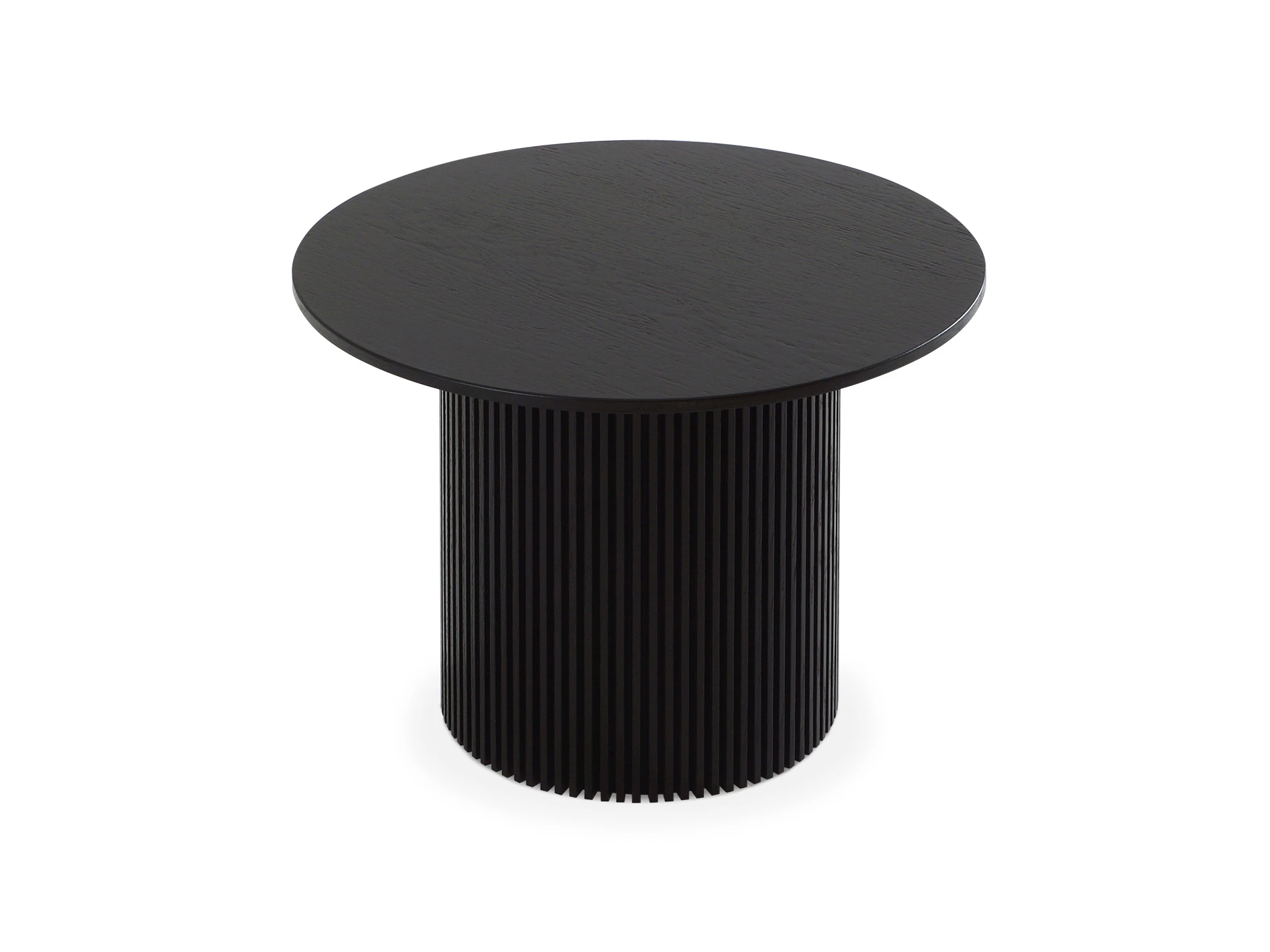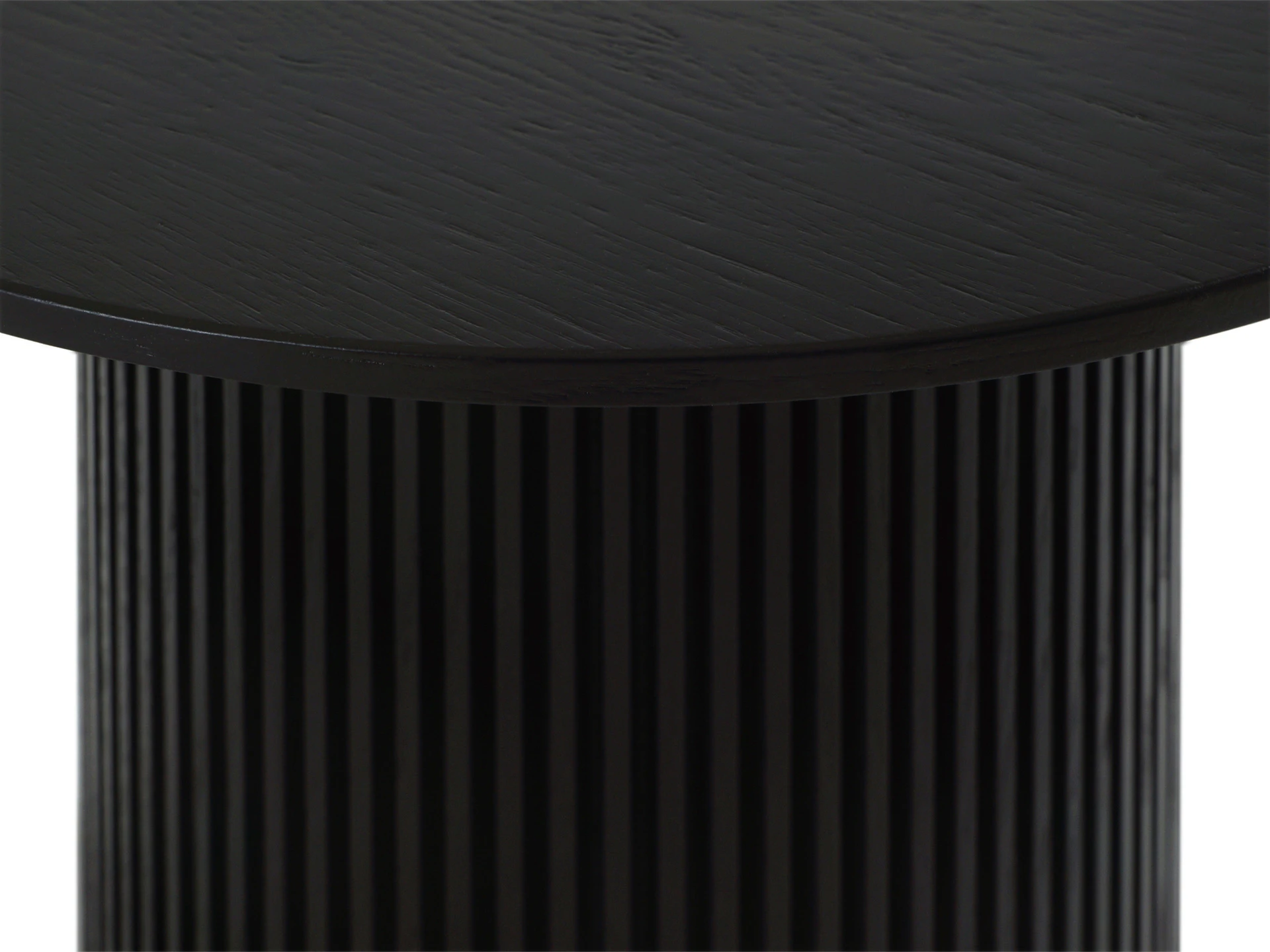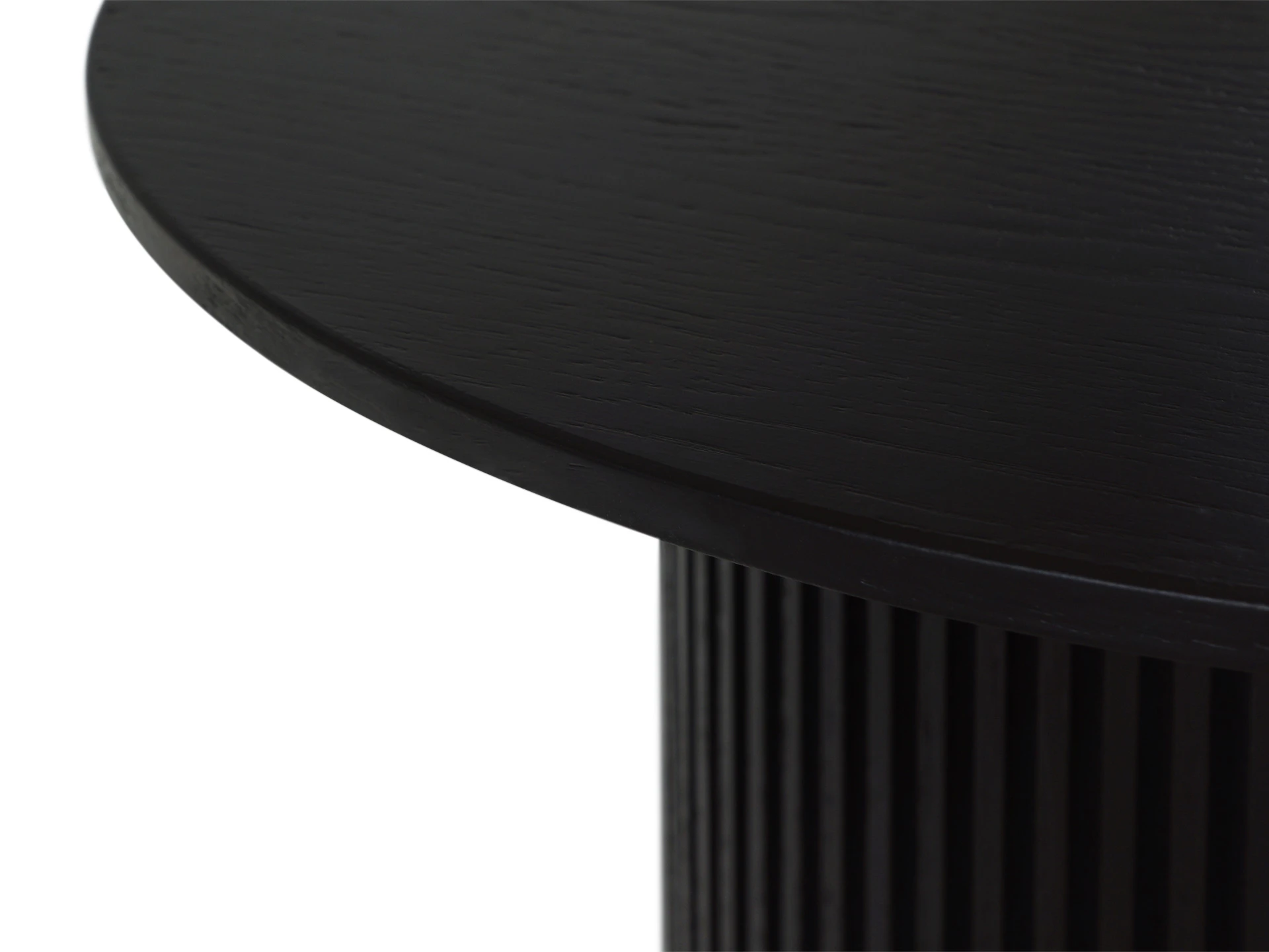 Дизайн сфокусирован на контрастном взаимодействие фактур. Цилиндрическое основание с «гофрированной поверхностью» поддерживает гладкую круглую столешницу. Рельефные углубления на ножке придают динамичности, выразительности, эффектности. С этим столиком можно создавать вариативные интерьерные комбинации, которые подчеркнут индивидуальный характер пространства. Красивый естественный рисунок внесёт в пространство частичку природной энергии. Уместен будет в любой локации от диванной зоны до спальни.