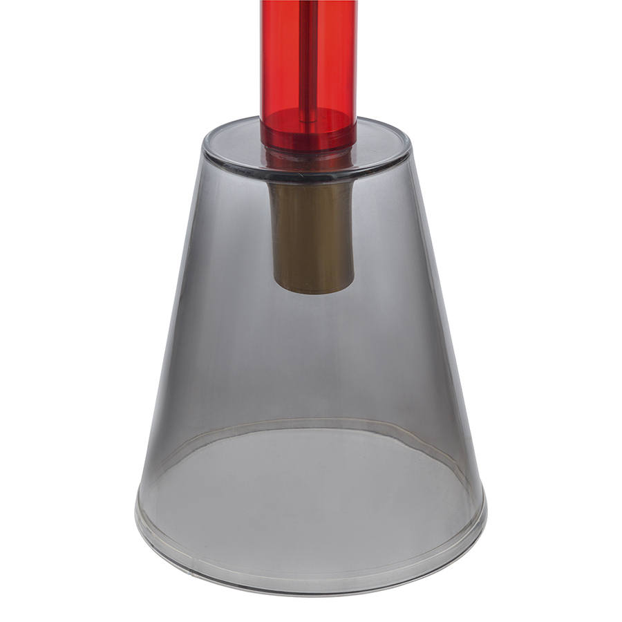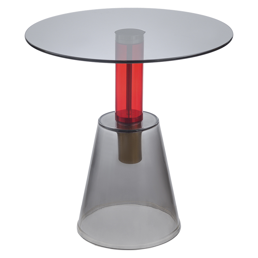 Кофейный столик Amalie привлекает внимание необычным дизайном – все элементы конструкции выполнены из стекла. Столешница и основание имеют серый оттенок. Ярким акцентом выступает ножка красного цвета. Такой предмет мебели органично вписывается в различные интерьерные стили: минимализм, фьюжн, поп-арт, хай-тек и др.