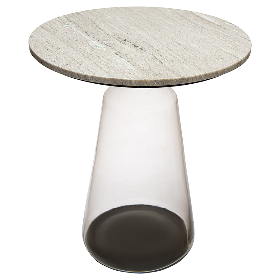 Материалы: столешница – мрамор, основание – стекло. Диаметр: 50 см. Высота: 54 см. Цвет: мрамор/бежевый.