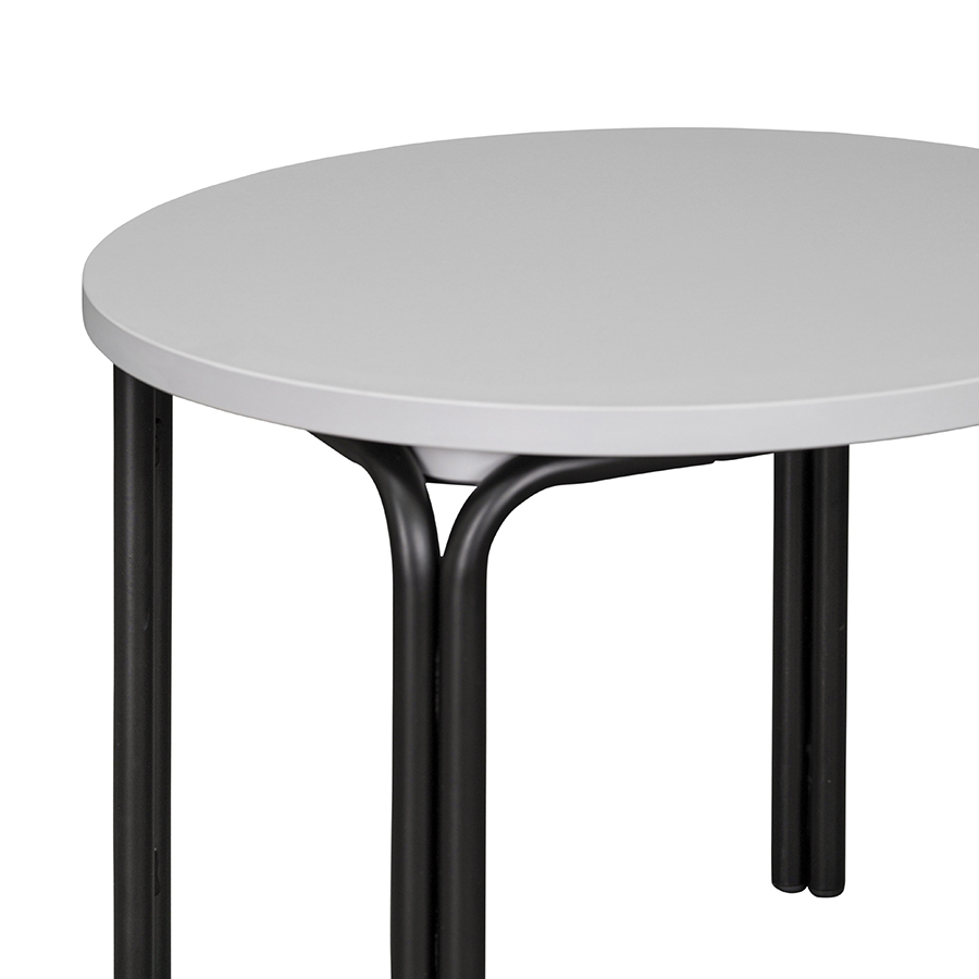 Материалы: сталь, ламинированная МДФ. Диаметр: 50 см. Высота: 40 см. Цвет: черный/серый.