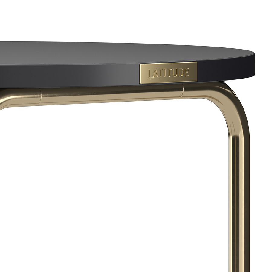 Материалы: сталь, ламинированная МДФ. Диаметр: 50 см. Высота: 40 см. Цвет: латунь/черный.
