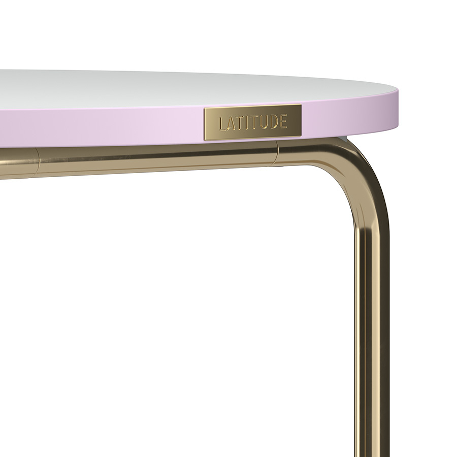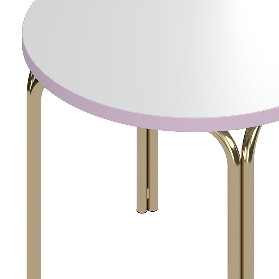 Материалы: сталь, ламинированная МДФ. Диаметр: 50 см. Высота: 40 см. Цвет: латунь/серый/розовый.