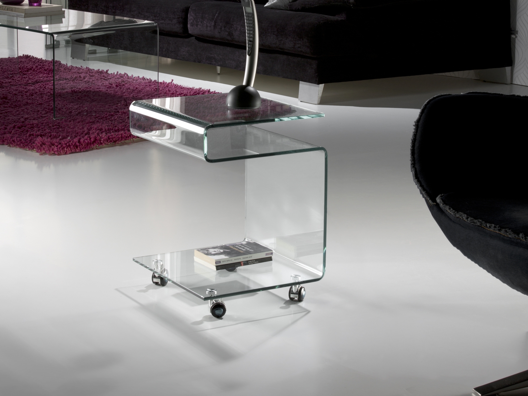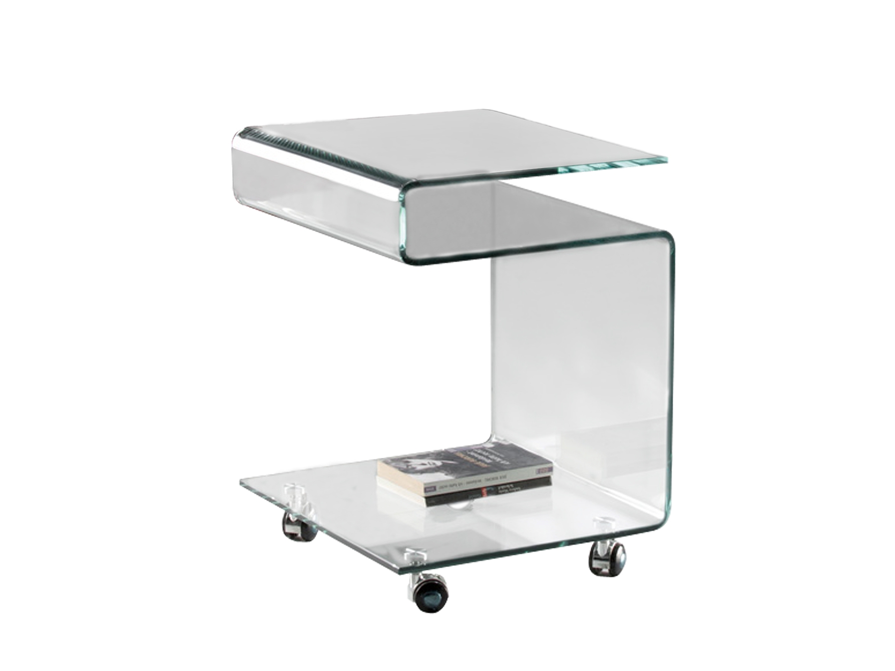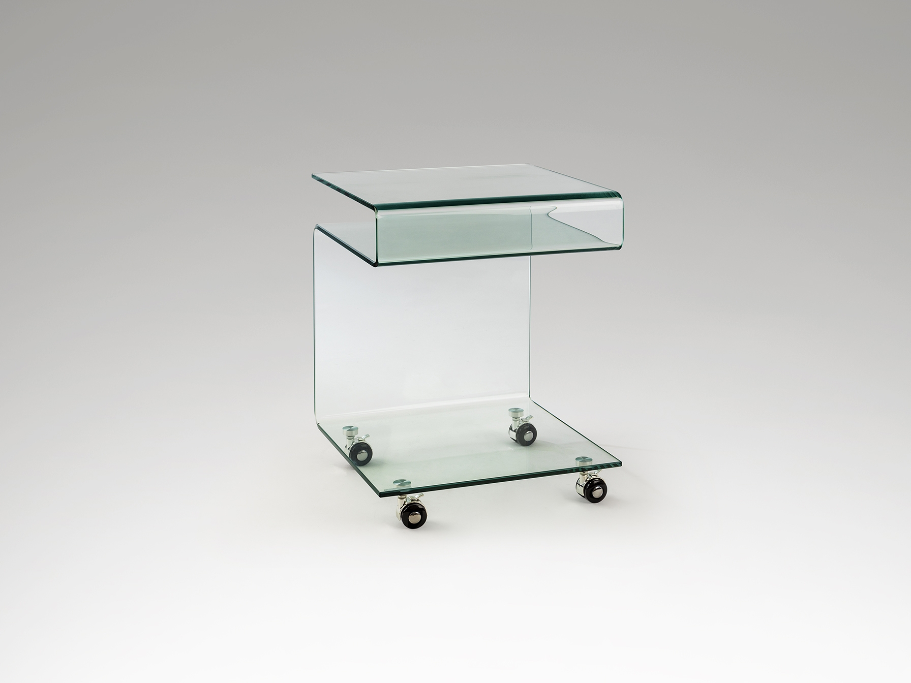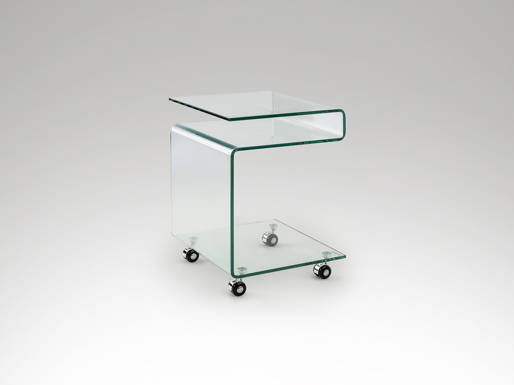 Журнальный столик на колесиках из гнутого стекла 10 мм, прозрачный.