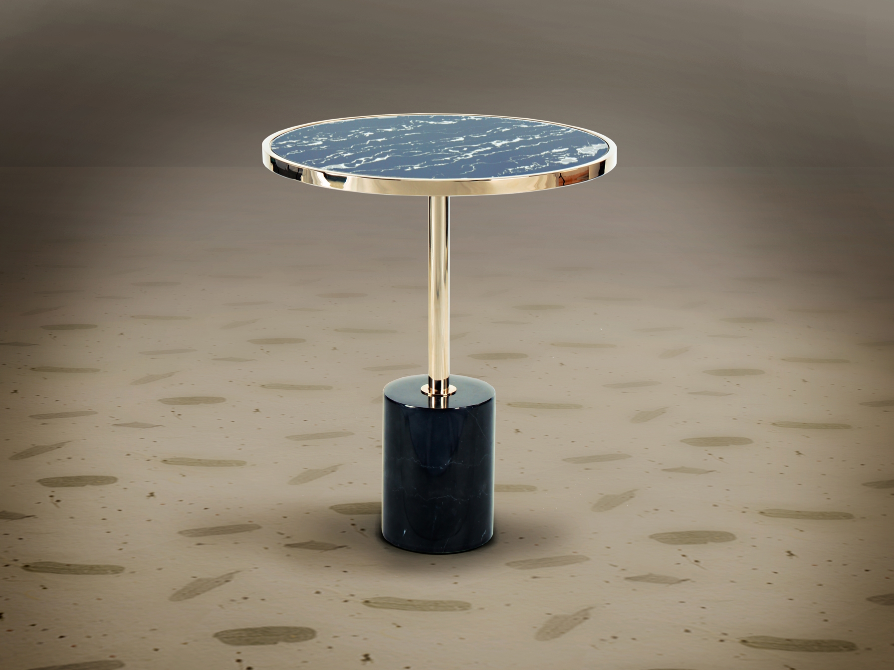 Столик придиванный из нержавеющей стали с золотистым покрытием. Основание черное мраморное и столешница из закаленного стекла с покрытием, имитирующим чёрный мрамор.