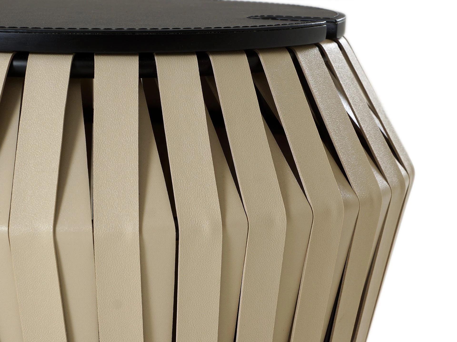 Круглая столешница — массив дерева в экокоже. Столик смотрится легко и воздушно за счет «плетения» из металлических лент. Такая архитектура добавляет интереса к предмету и делает его акцентным. Столик Ding можно адаптировать к любым потребностям. На нем превосходно будут смотреться как кружки с напитками, так и вазы с цветами. Сочетание экокожи и металла добавит глубины и привлекательности интерьеру.