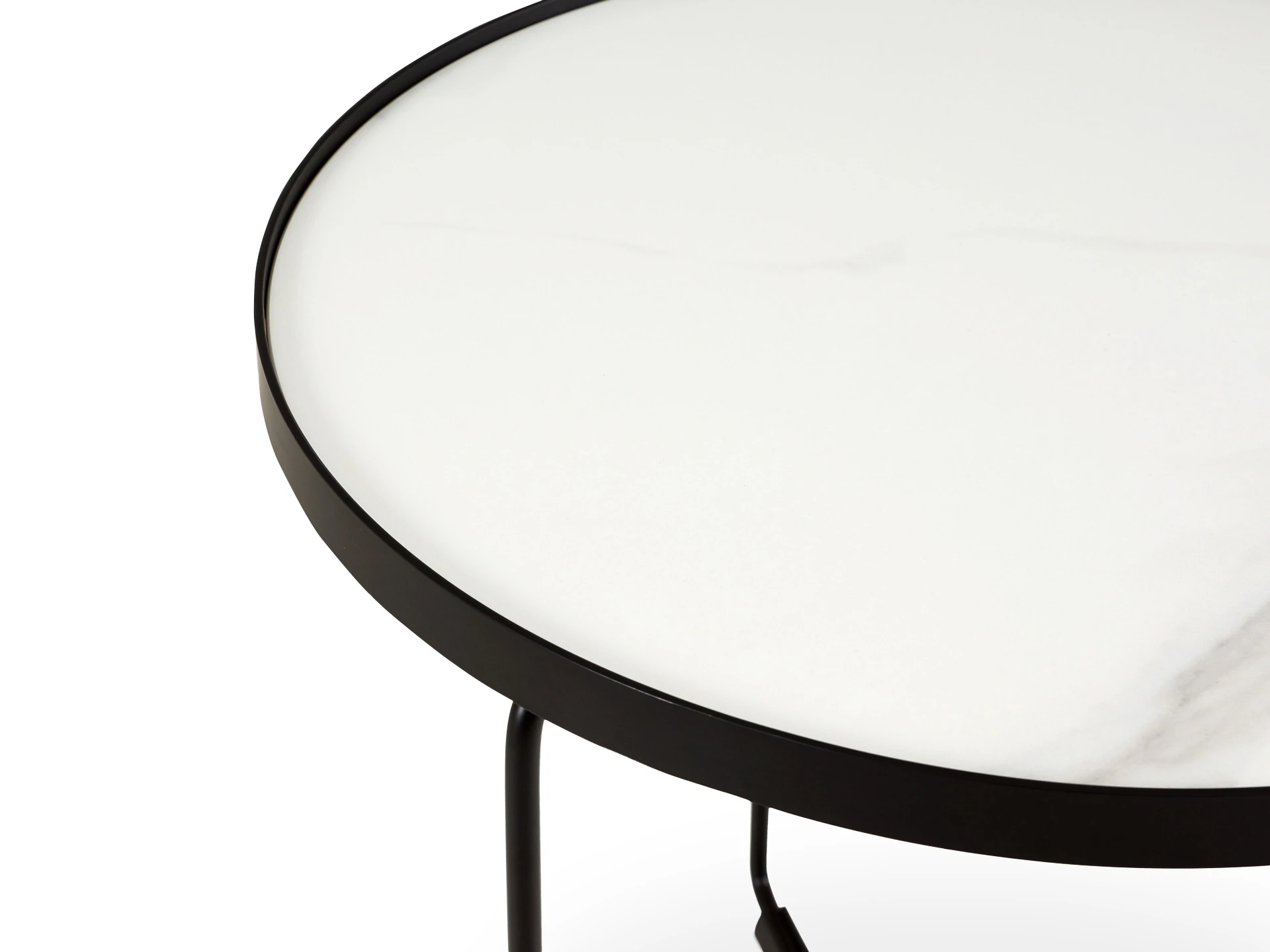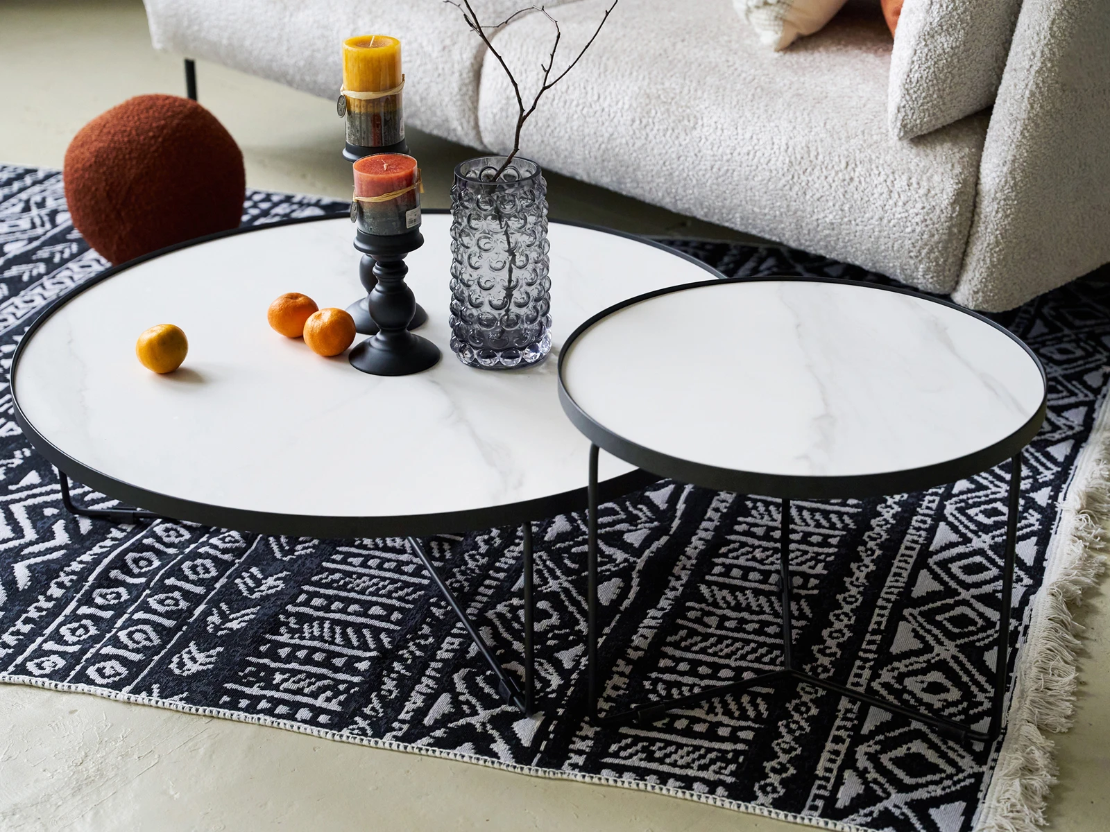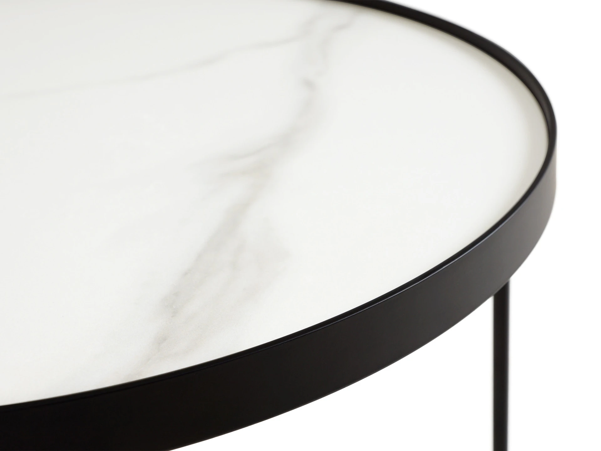 Fonot — коллекция журнальных столиков из трех вариаций. Единая визуальная концепция заключается в лаконичности и легкости. За эффектное воплощение отвечает сочетание плавных и строгих линий, а также необычный союз материалов. Спеченный камень белого цвета гармонично контрастирует с изящными черными ножками из металла.