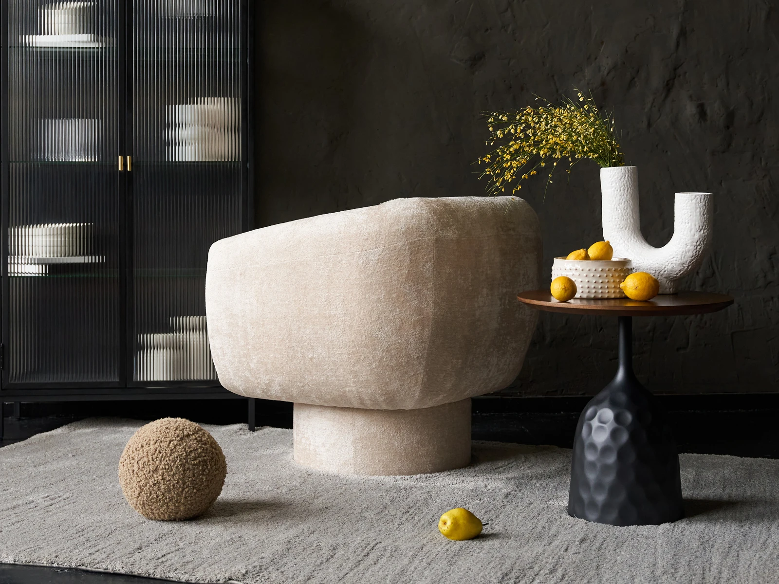 Lemosab — коллекция из трёх журнальных столиков, которые можно использовать как отдельно, так и в комбинации друг с другом. Их ДНК — плавные эргономичные формы и визуально контрастный образ. Столешница из шпона грецкого ореха привносит природную эстетику. Её «теплый» характер выделяется на фоне брутального основания из железа с порошковым покрытием черного цвета.