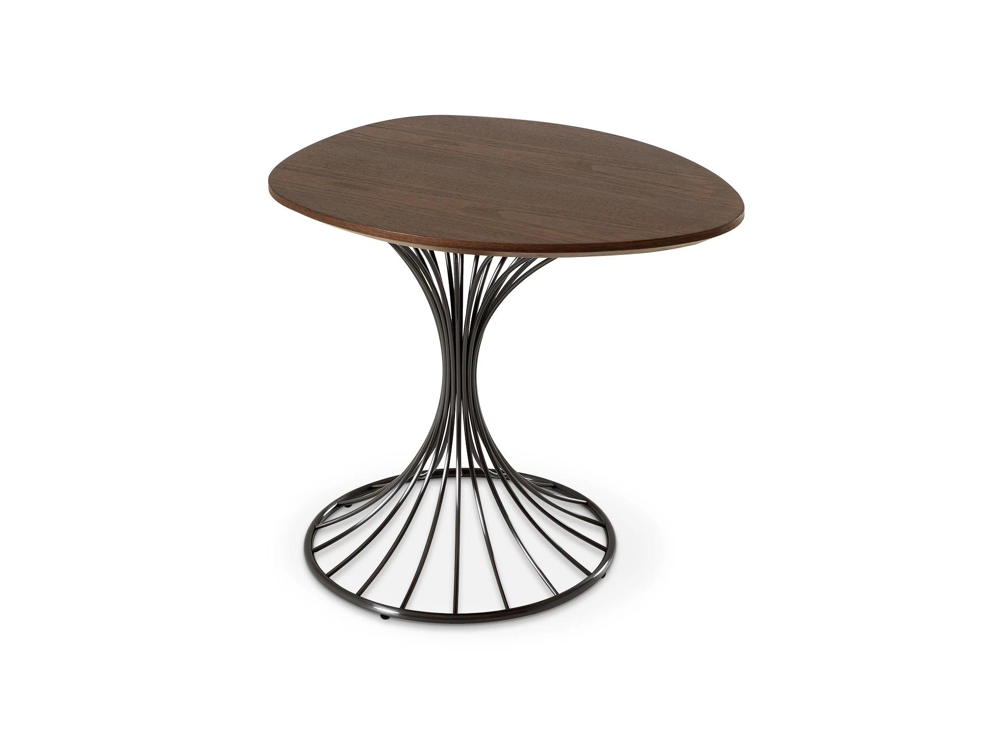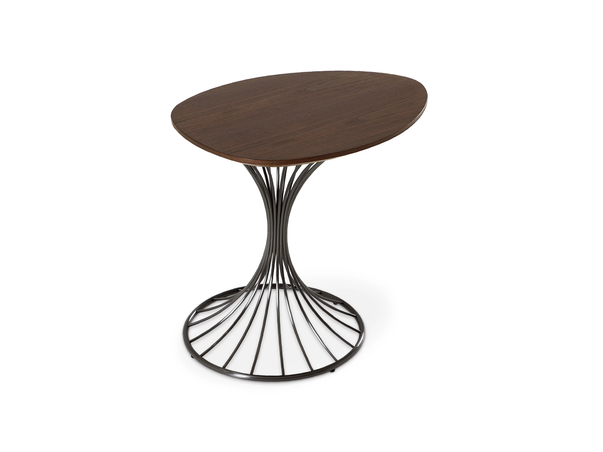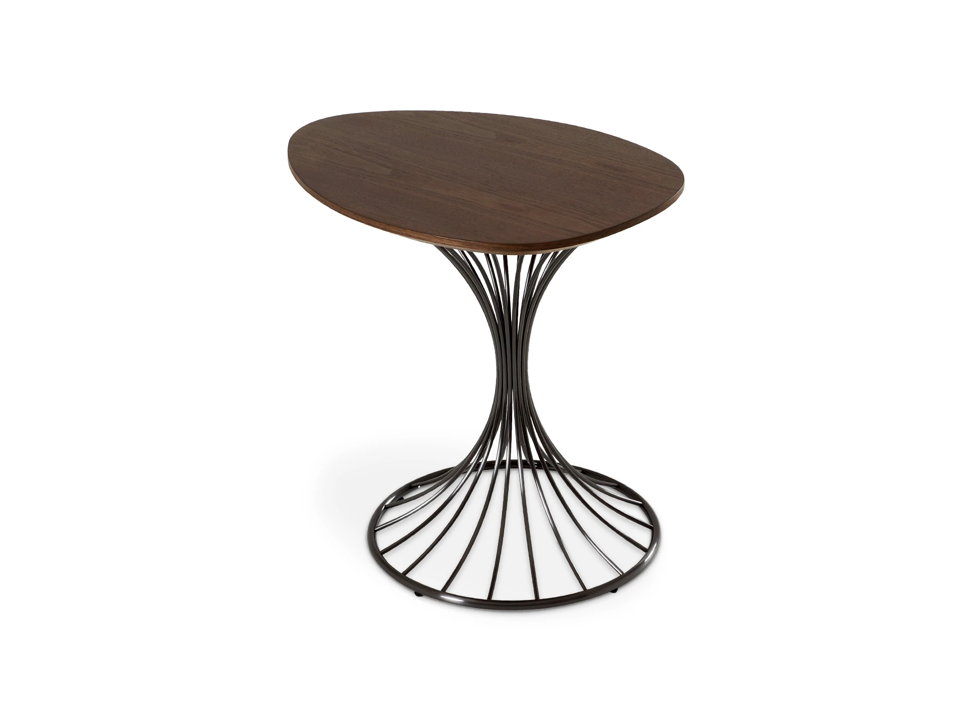Столик журнальный Marty состоит из столешницы овоидной формы и скульптурного металлического основания, напоминающего сноп. Диалог конфигураций и материалов поддерживает оригинальный дизайн, который гармонично вписывается в пространства любых назначений.
