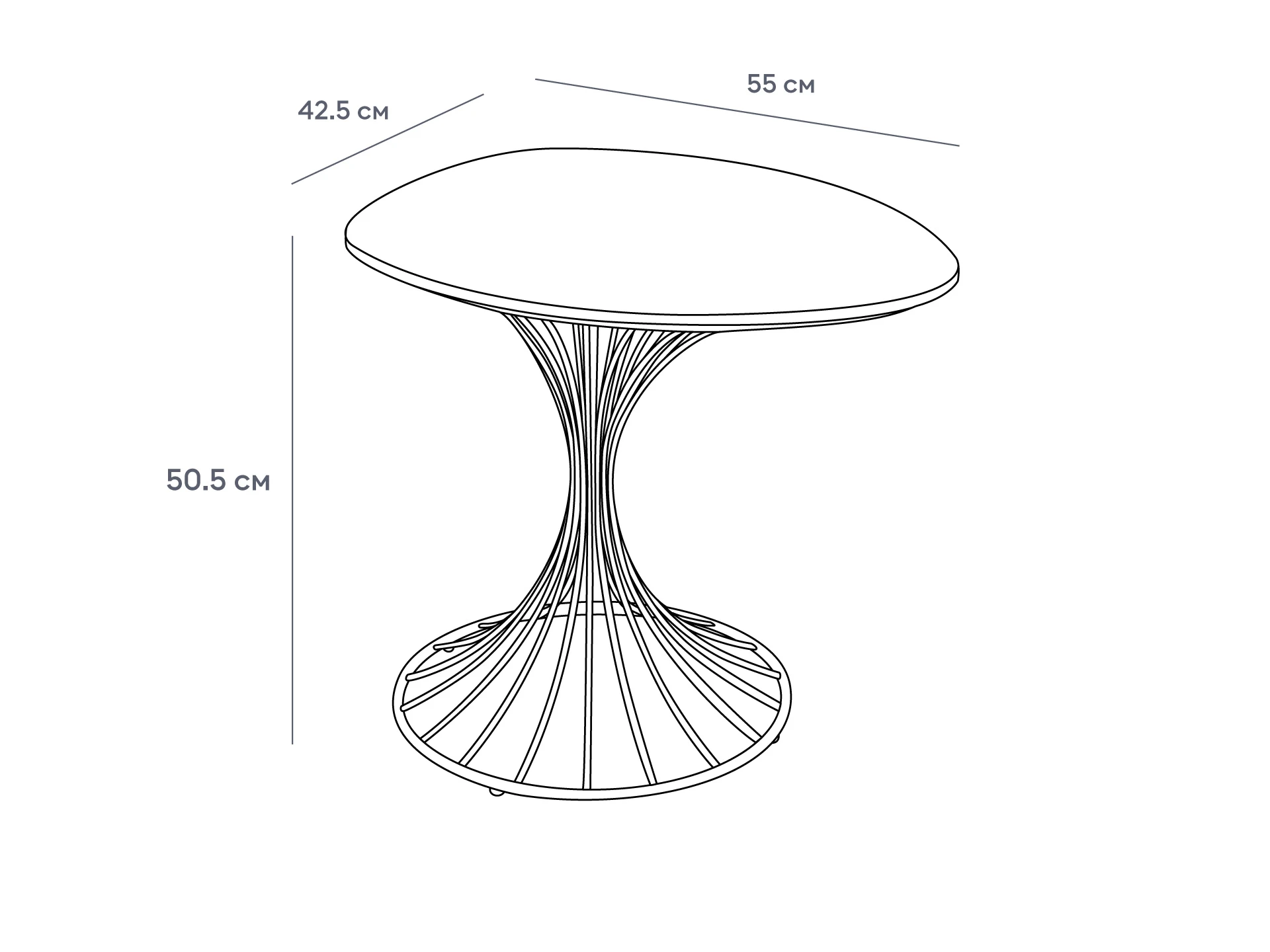 Столик может работать в качестве подставки для растений, демонстрации аксессуаров, декора. Его плавные формы эстетично дополнят как городские, так и загородные локации. Компактный размер позволяет использовать даже на небольшой площади, например, на балконе, веранде. Вы без труда перенесете столик в нужную вам точку, составите стильную композицию, добавив его к дивану, креслу, пуфу.
