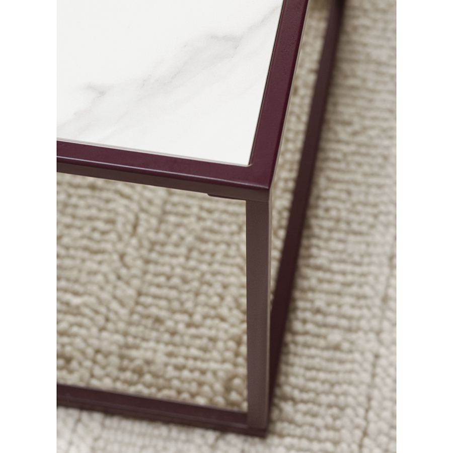 Материалы: столешница – углеродистая сталь, керамика; каркас – сталь с порошковым покрытием. Размеры: 110х50х37 см. Цвет: белый/сливовый.