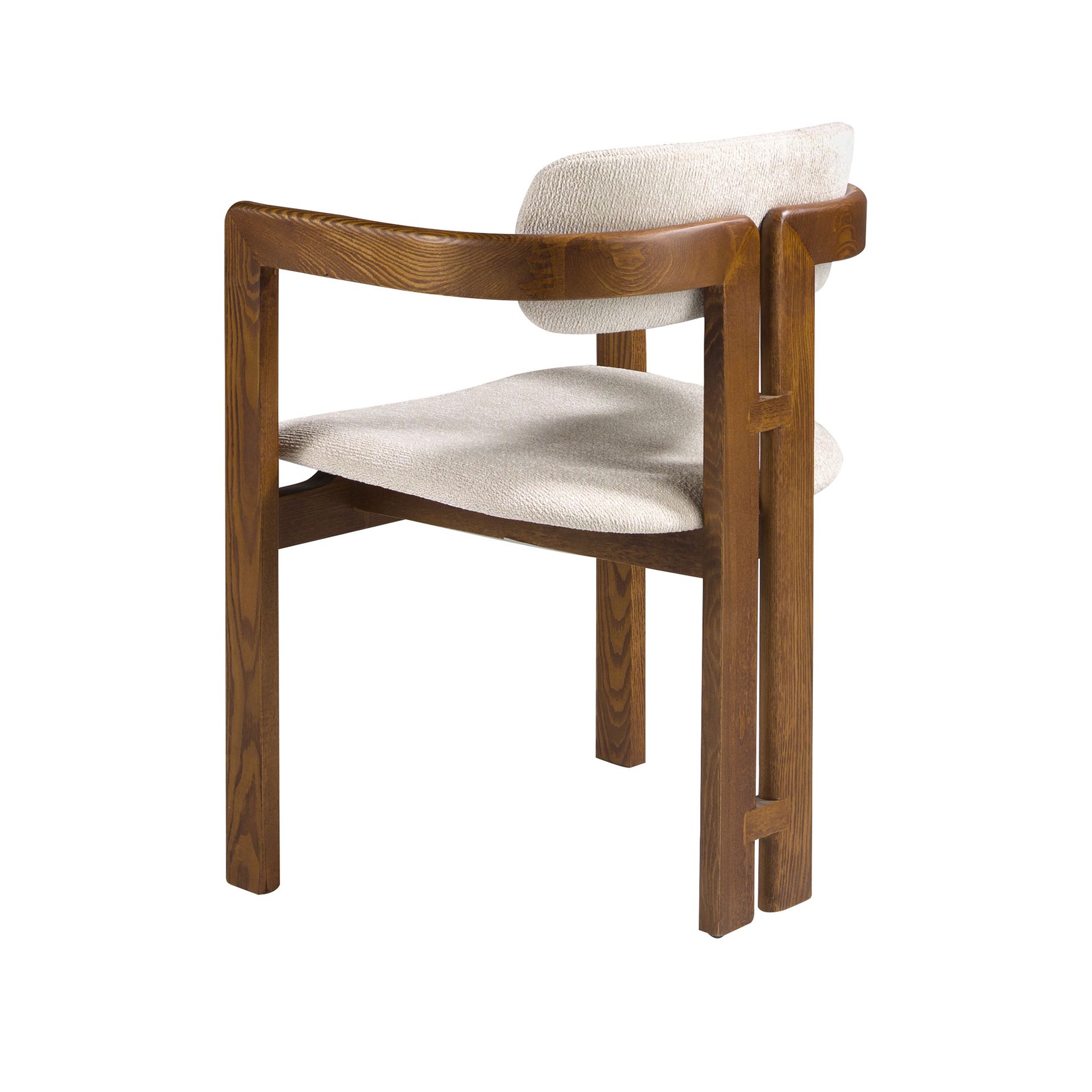 Стул с подлокотниками в современном дизайне, с сиденьем и спинкой, обитыми тканью бежевого оттенка. Его деревянные ножки орехового цвета в авангардном, но неподвластном времени стиле сделают его незаменимым предметом мебели для вашей кухни или столовой. Этот стул от Angel Cerdá сочетает в себе уникальный и индивидуальный стиль бренда, а также высочайший комфорт и устойчивость благодаря высокому качеству обивки и оригинальной конструкции ножек.