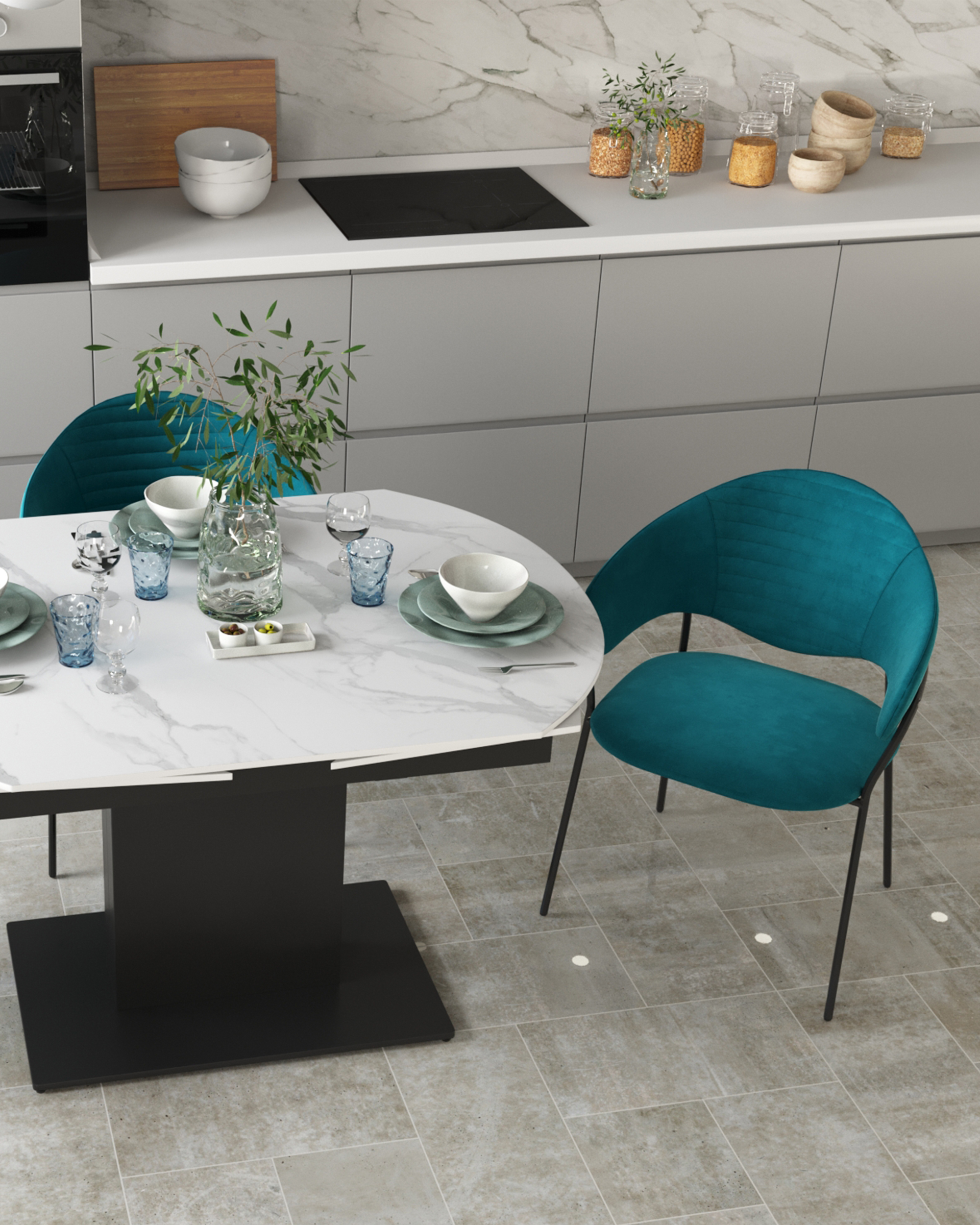 Стул Алексис велюр сине-зелёный ножки металл черные