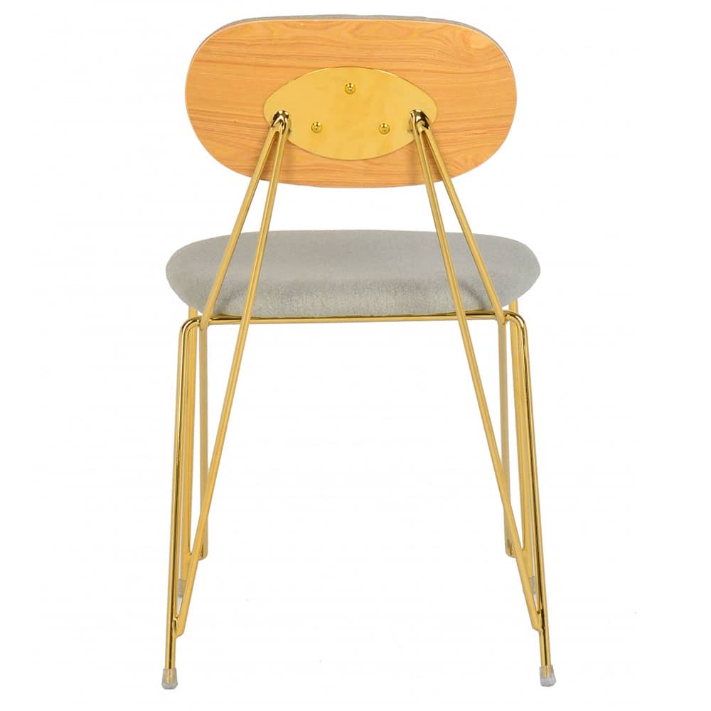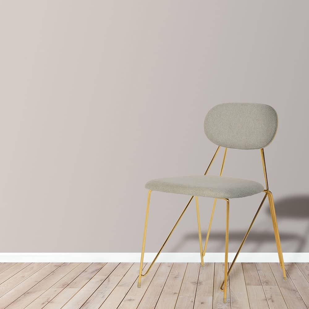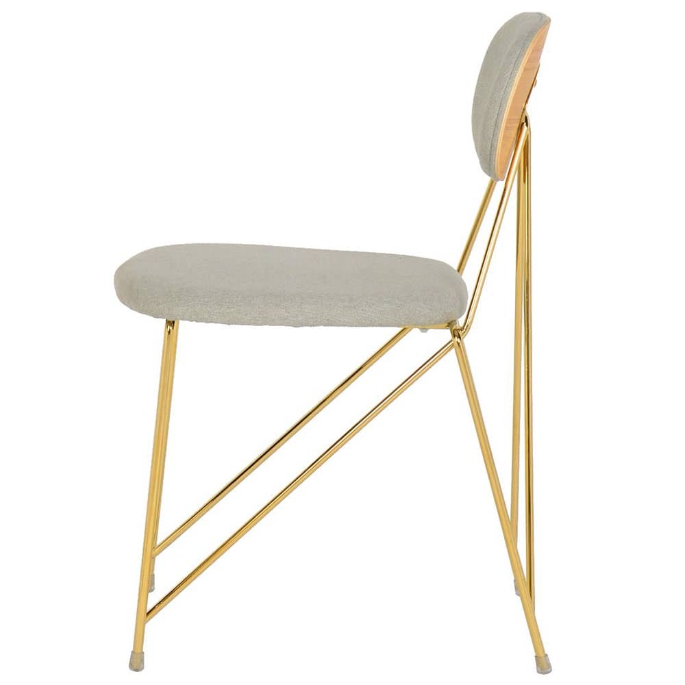 Утончённые хромированные золочёные ножки и тонкая фанерованная спина, обитая с внутренней стороны тканью - это оригинальный и необычный дизайн стула Alice.