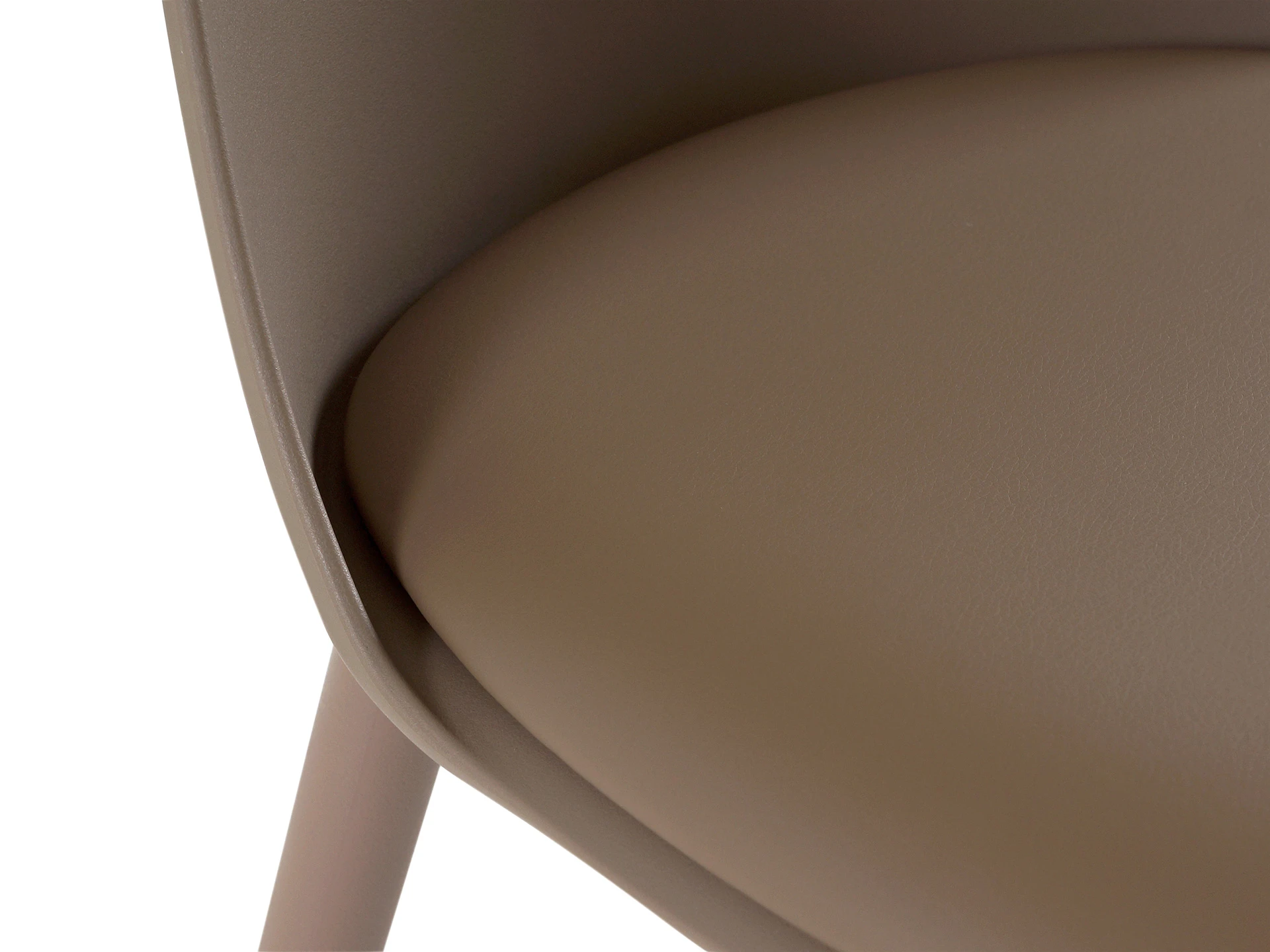 Материал обивки сидения - экокожа, материал спинки и ножек - пластик. Наличие подпятников, предохраняющих от царапания пола.