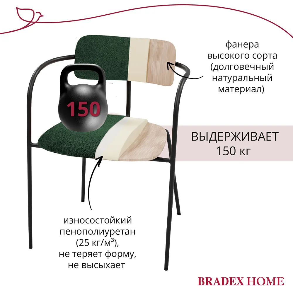 Металлические ножки диаметром 19 мм и толщиной 1,2 мм гарантируют стабильность и долговечность, выдерживая нагрузку до 150 кг.