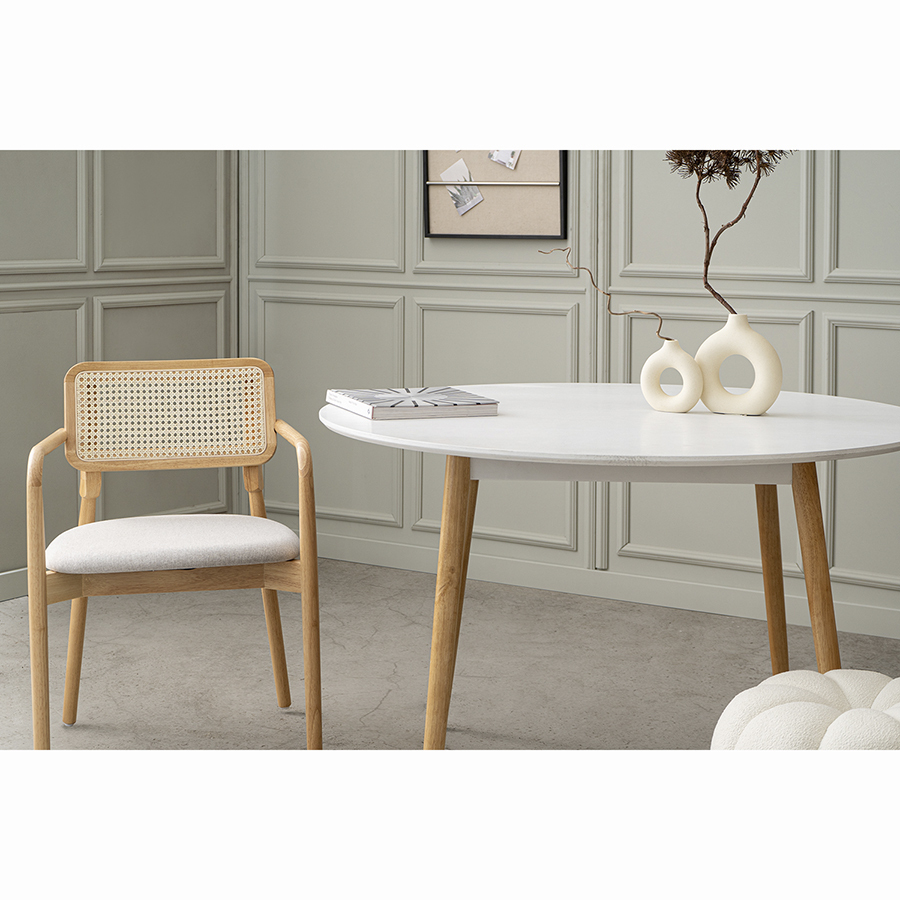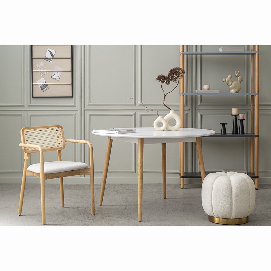 Стул обеденный Barney, выполненный из дерева и ротанга, придется по душе всем, кто любит натуральные цвета и фактуры.