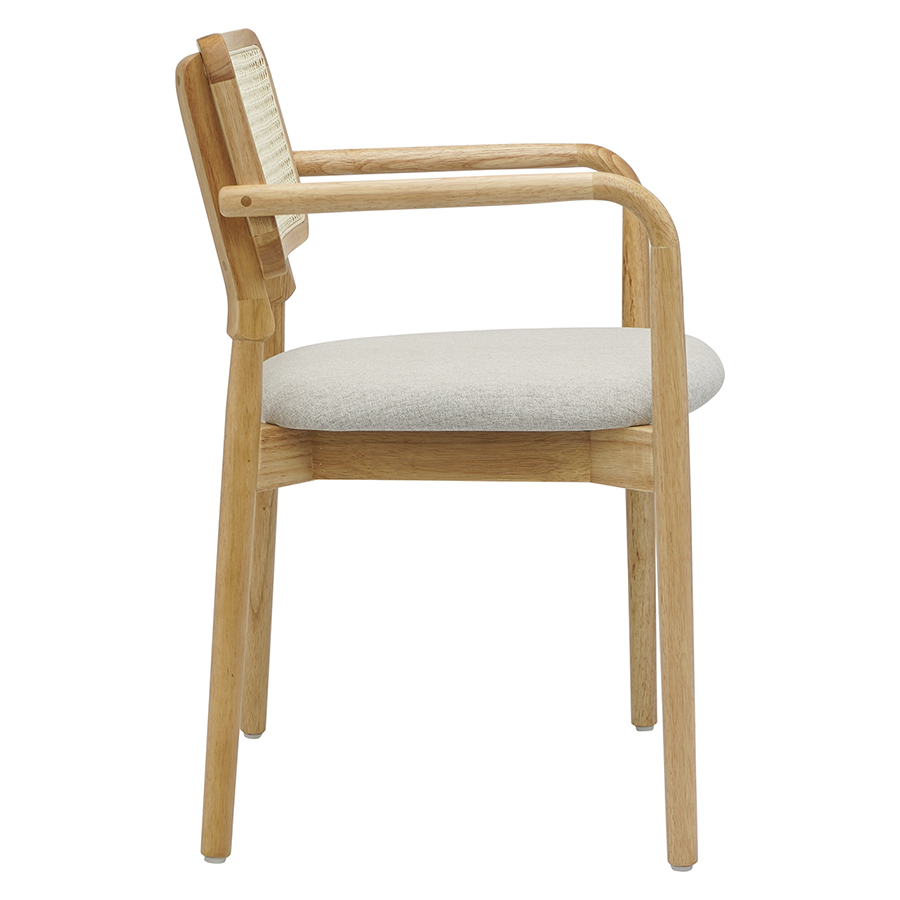 Сиденье с мягким пенополиуретановым наполнителем, широкая спинка и подлокотники гарантируют комфортную посадку и оптимальную поддержку спины, позволяя без чувства усталости наслаждаться долгими застольями в кругу друзей и семьи. Тканевая обивка приятна на ощупь, практична и проста в уходе. Сочетание дерева и текстиля делает стул уютным и отлично комбинируется с различными вариантами отделки и декора.