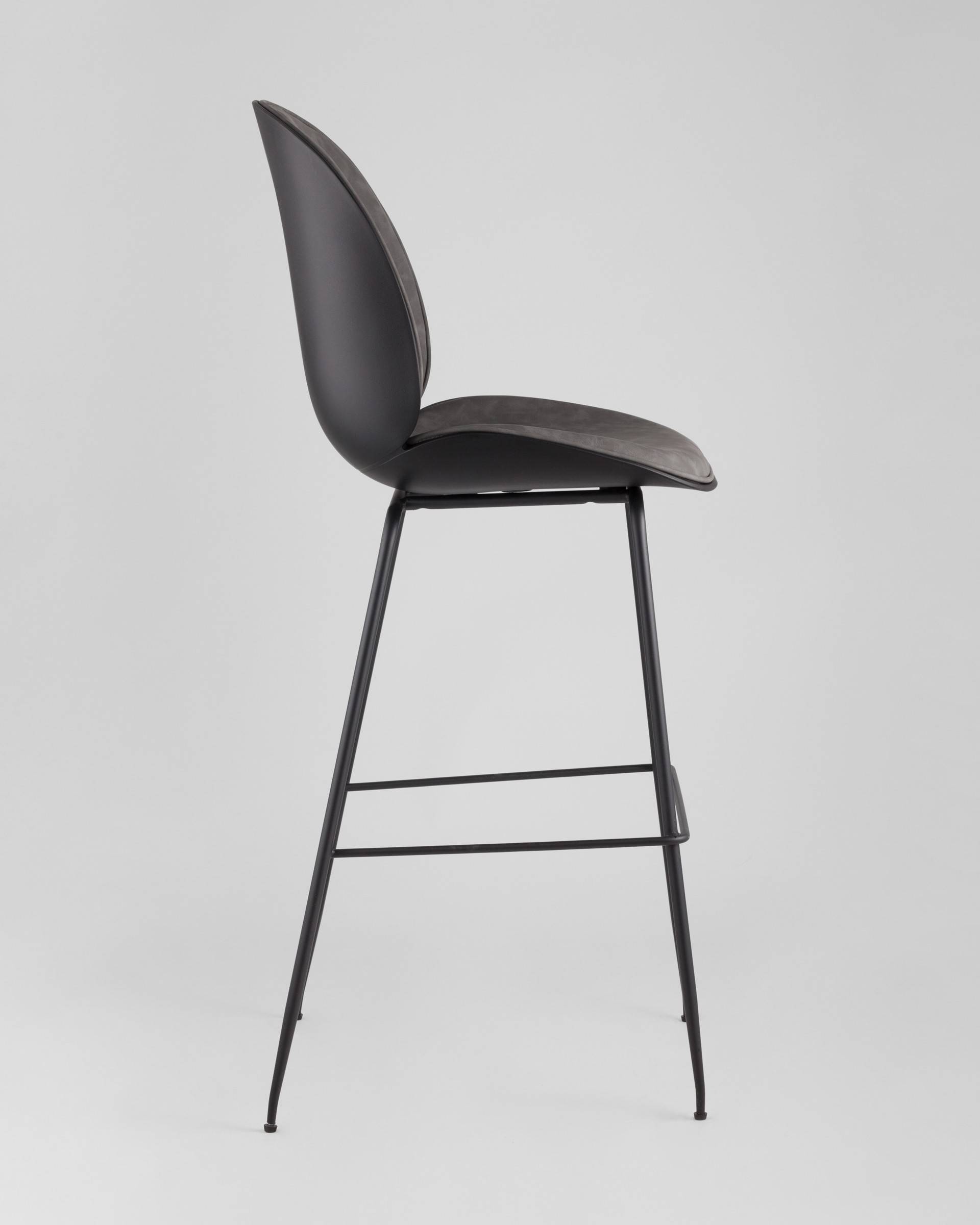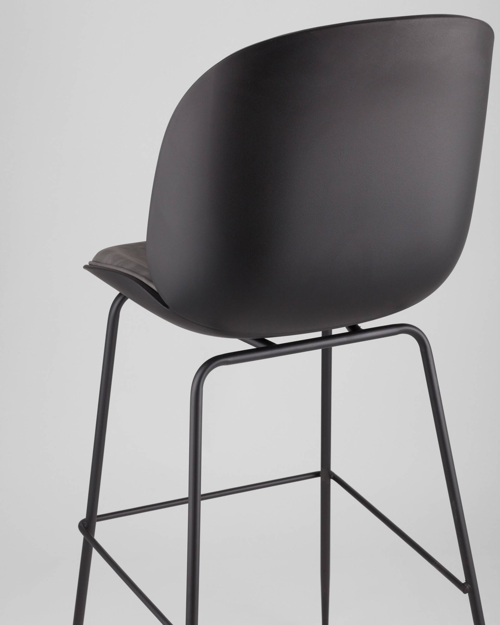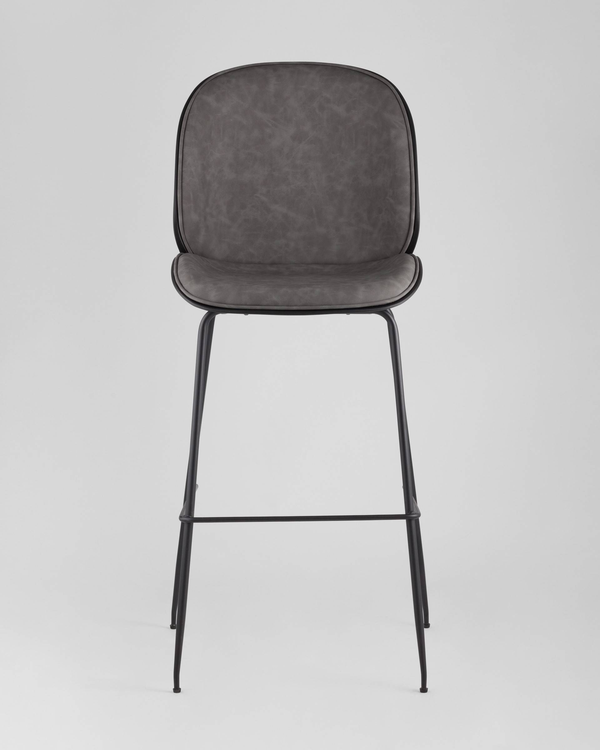 Стул барный Beetle со спинкой в серой экокоже на металлических ножках