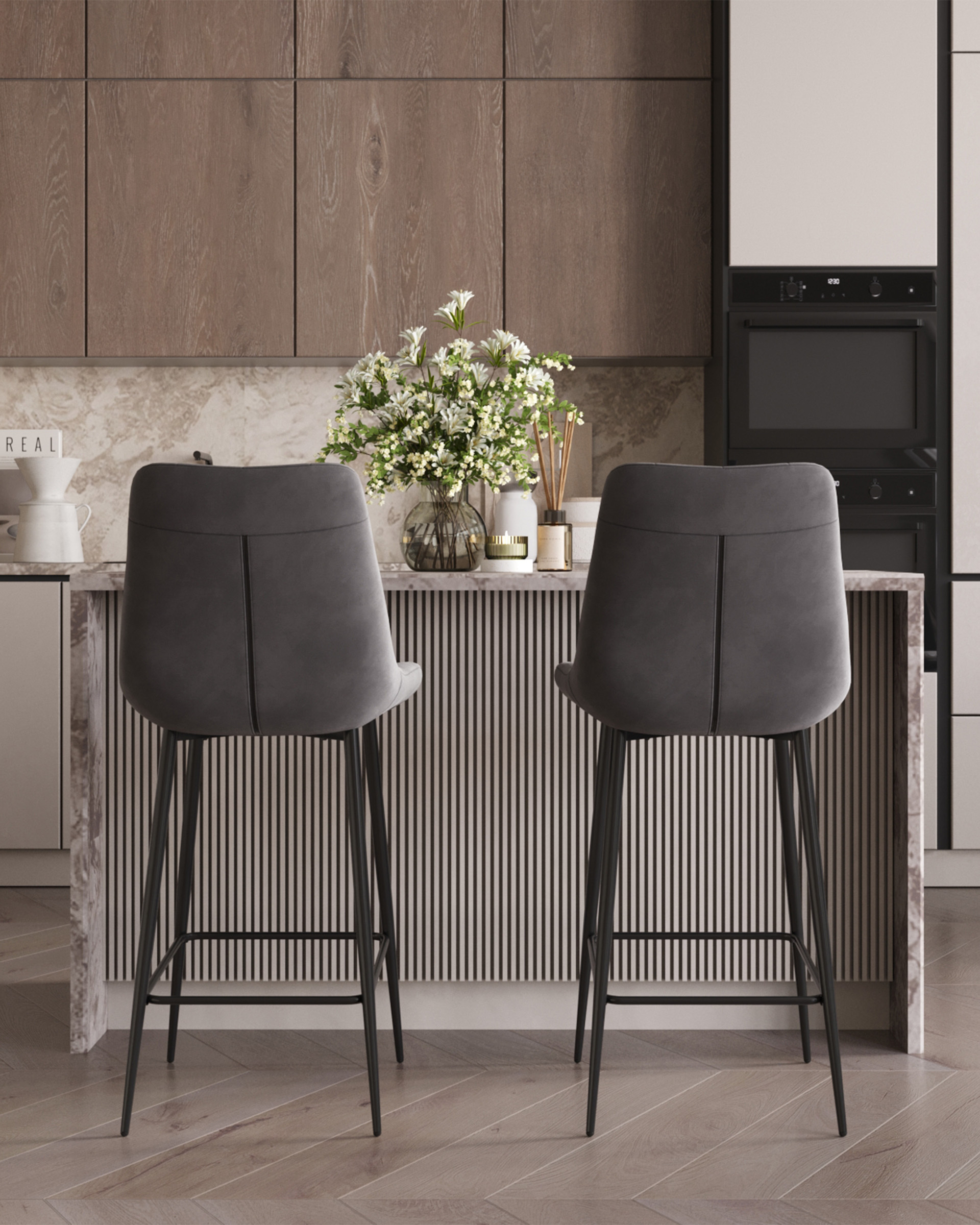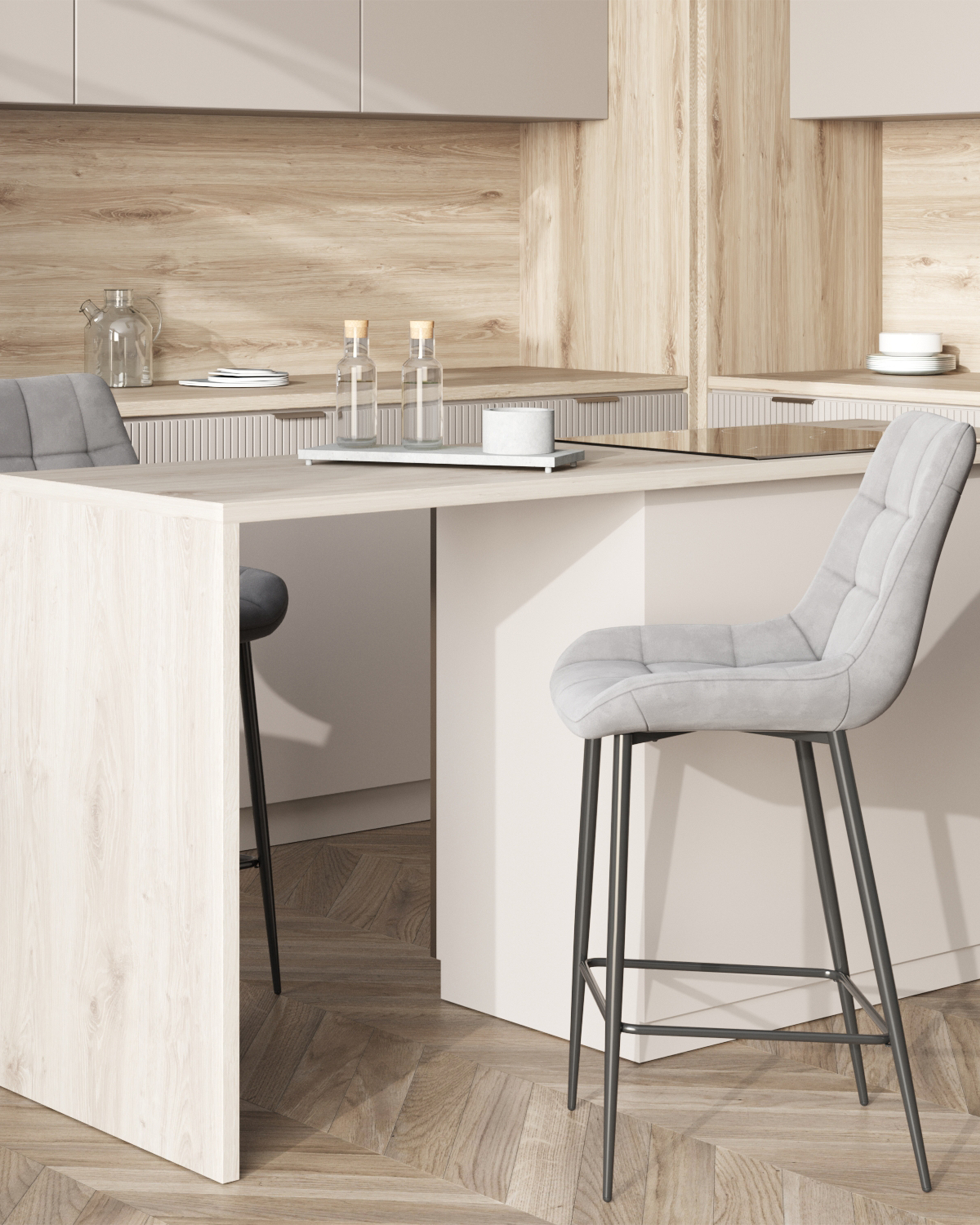 Стул барный Флекс обивка велюр серый ножки металл черные
