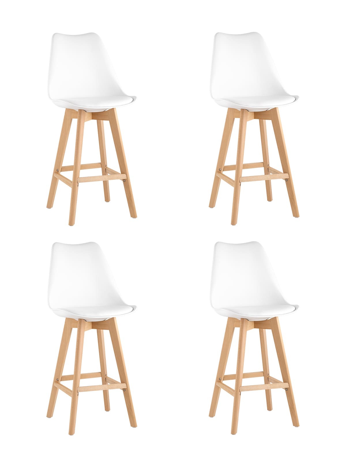Комплект из четырех стульев барных FRANKFURT белый сиденье экокожа ножки из массива бука