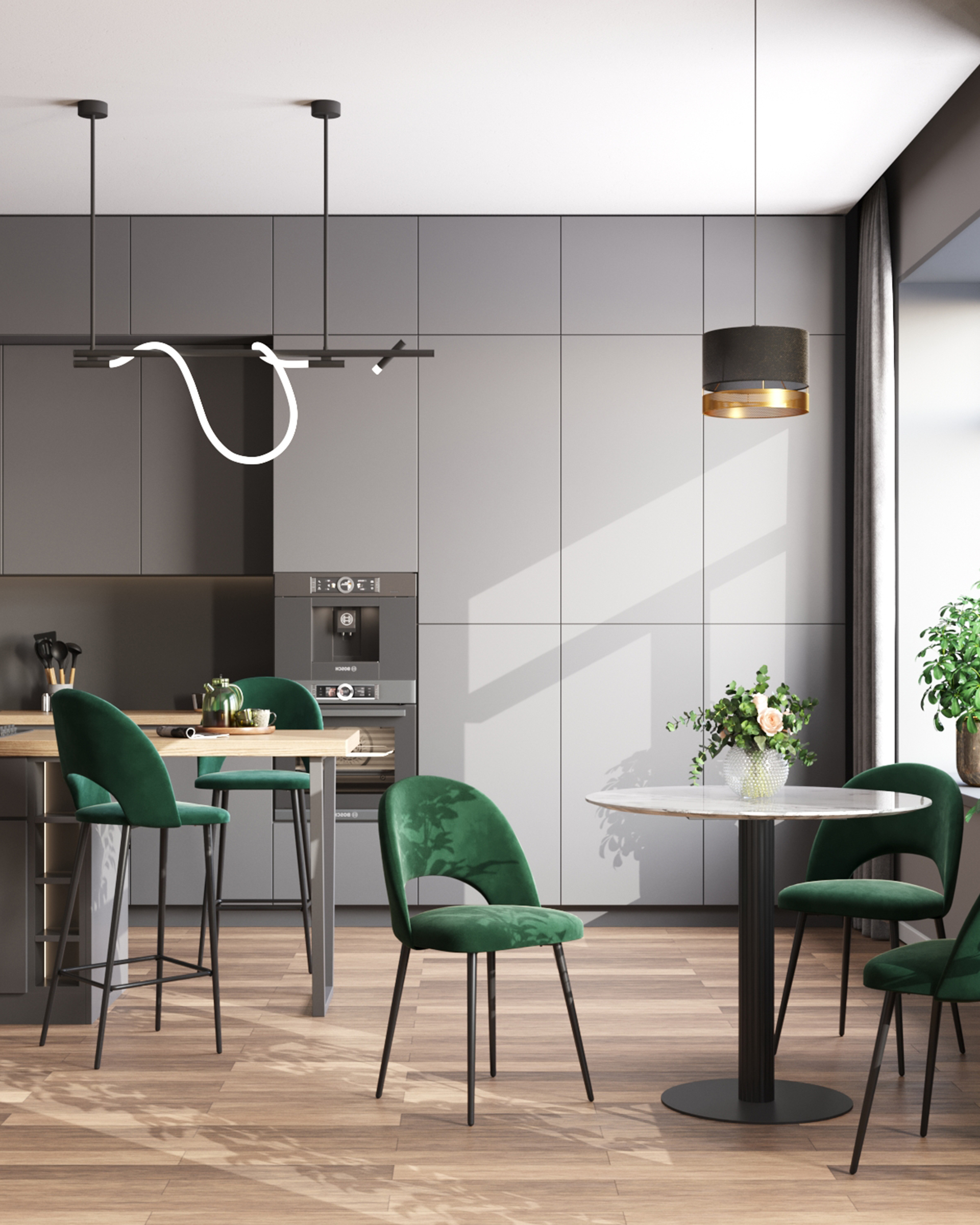 Стул барный Меган обивка велюр зеленый ножки металл черные