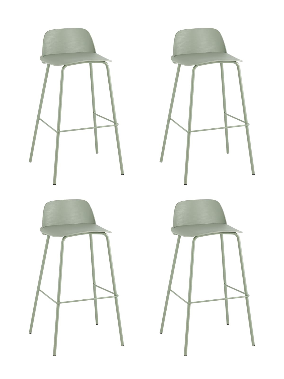 Комплект из четырех стульев барных Mist пластиковое сиденье, серо-зеленый, ножки металл