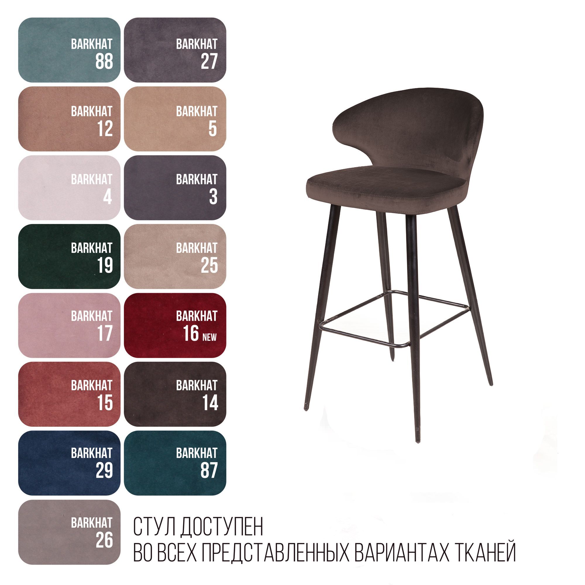 Стул барный Richard, бархат коричневый 12