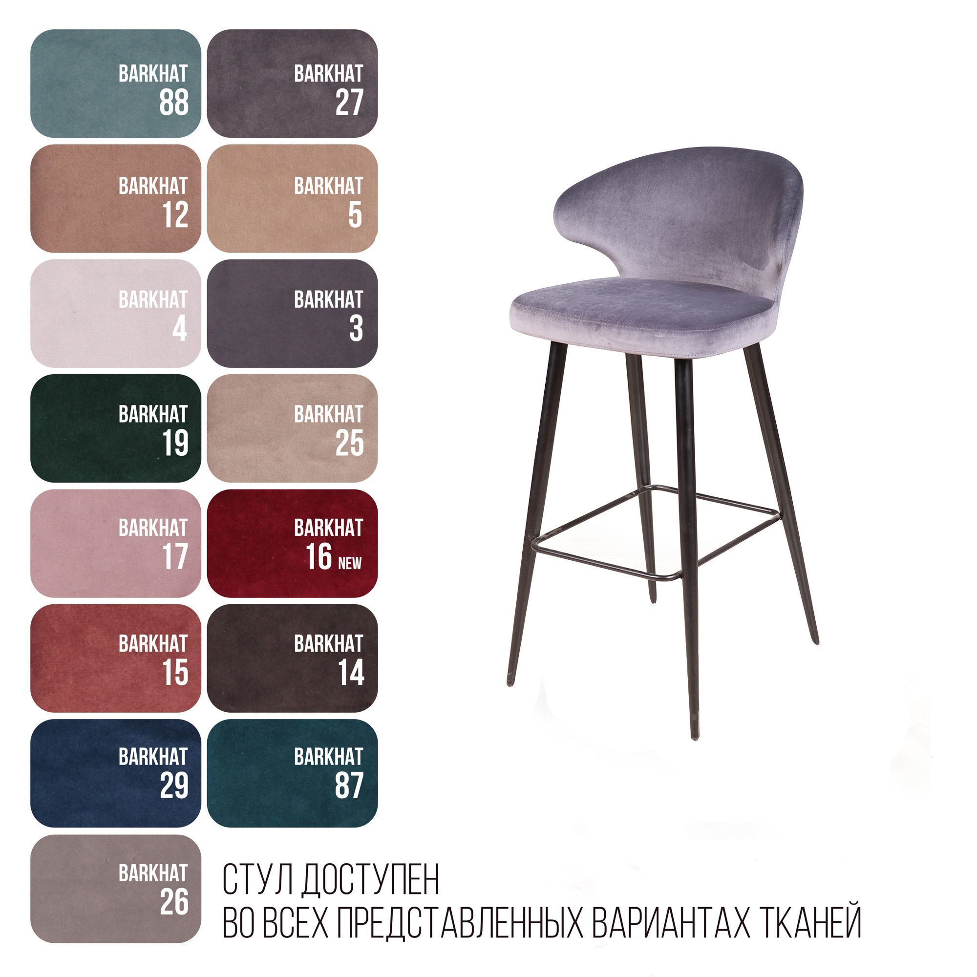 Стул барный Richard, бархат светло-серый 26