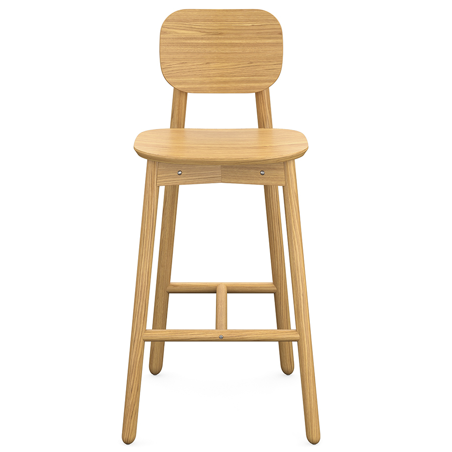 Cтул барный изготовлен из массива ясеня – твердой породы древесины, плотность и прочность которой не уступает характеристикам дуба. Благодаря прекрасным эксплуатационным свойствам материала готовое изделие устойчиво к износу, деформации, ударам, имеет высокие показатели практичности и экологической безопасности. Наличие специальной перекладины позволяет удобно расположить ноги. Деревянная мебель с лаконичным дизайном всегда актуальна, отлично сочетается с любыми стилевыми решениями, что является ее неоспоримым преимуществом.