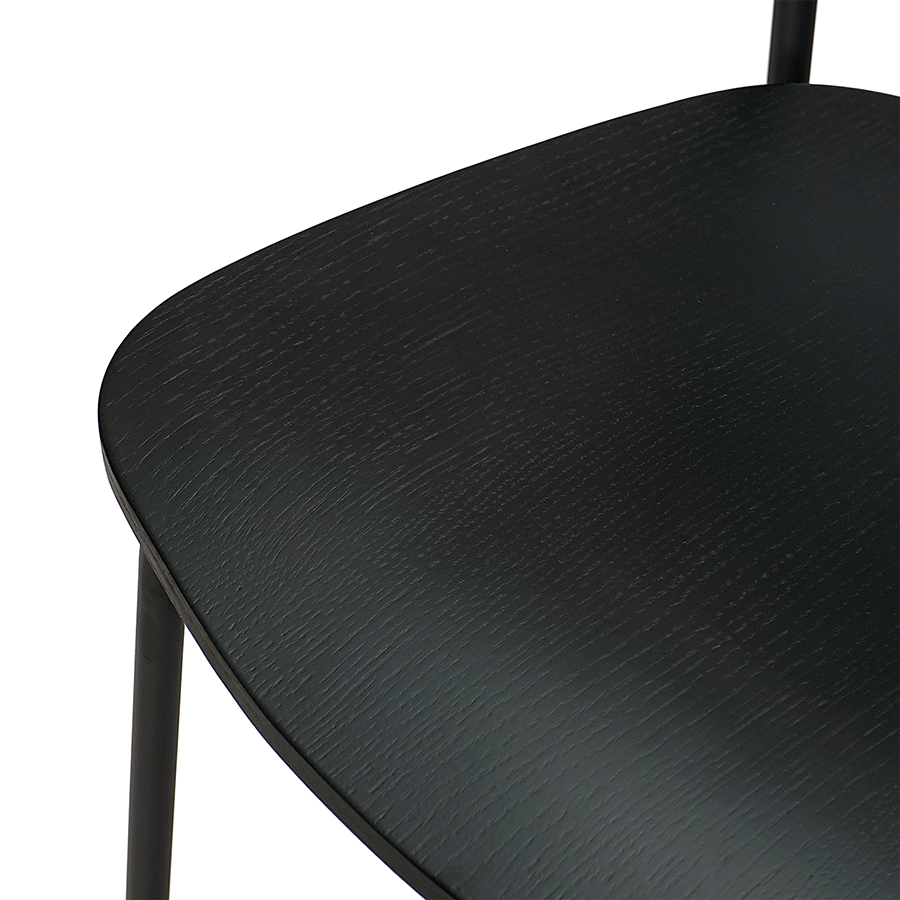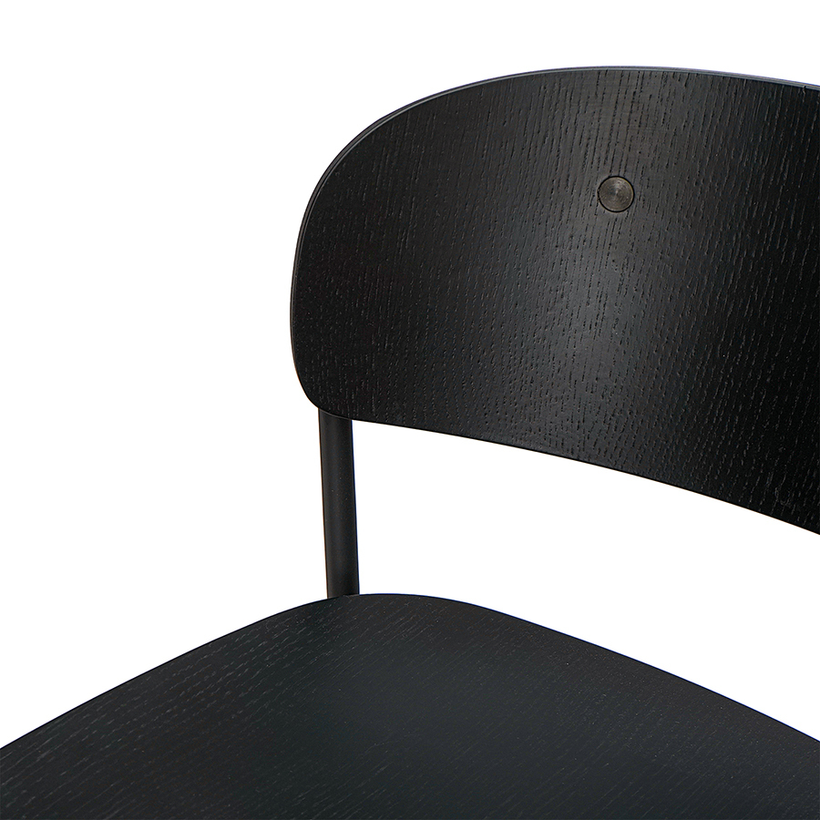 Материалы: фанера, шпон ясеня, железо. Высота сиденья: 72 см. Ширина сиденья: 43,5 см. Глубина сиденья: 40,5 см. Высота спинки: 28,5 см. Ширина спинки: 46 см. Высота подножки: 29 см. Максимальная нагрузка: 120 кг. Цвет: черный.