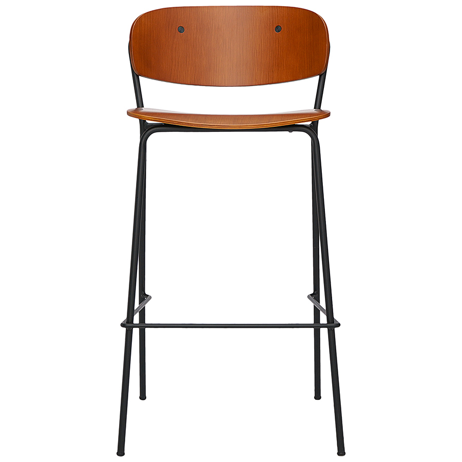 Материалы: фанера, шпон ясеня, железо. Высота сиденья: 72 см. Ширина сиденья: 43,5 см. Глубина сиденья: 40,5 см. Высота спинки: 28,5 см. Ширина спинки: 46 см. Высота подножки: 29 см. Максимальная нагрузка: 120 кг. Цвет: орех.