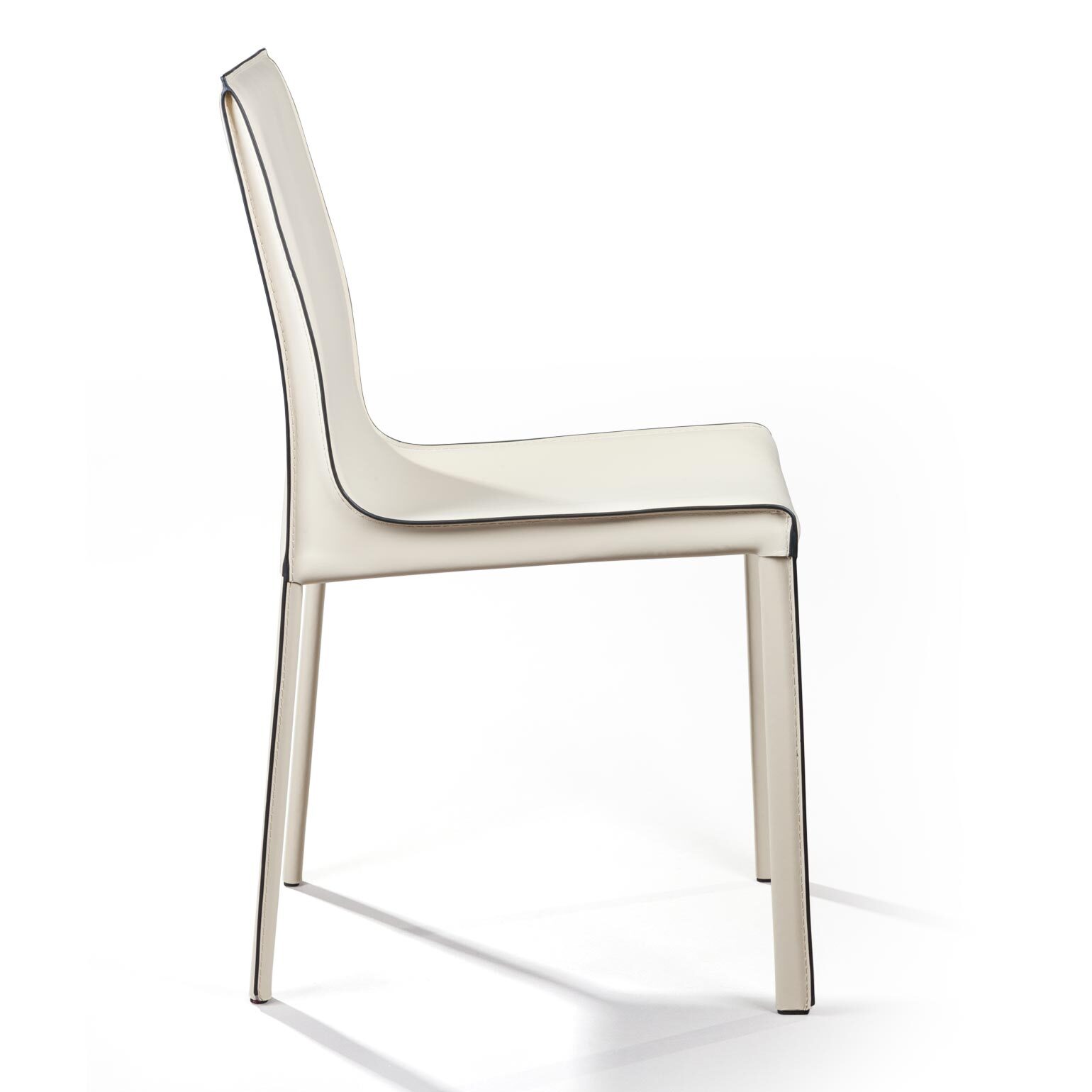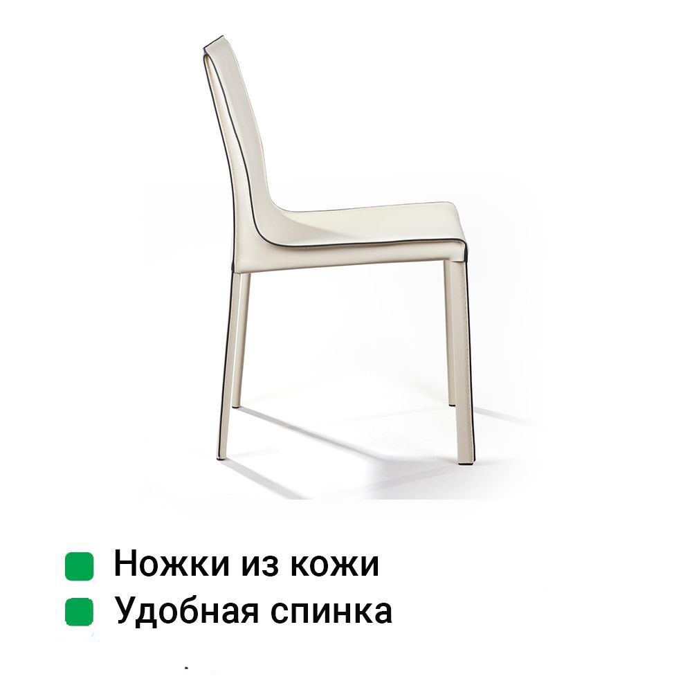 Крепкие металлические ножки скрыты под натуральной кожей такого же цвета, как и сам стул, благодаря этому создается лаконичный образ единого целого. На ножках предусмотрены специальные пластиковые накладки, которые придают стулу дополнительную устойчивость и защищают полот царапин.