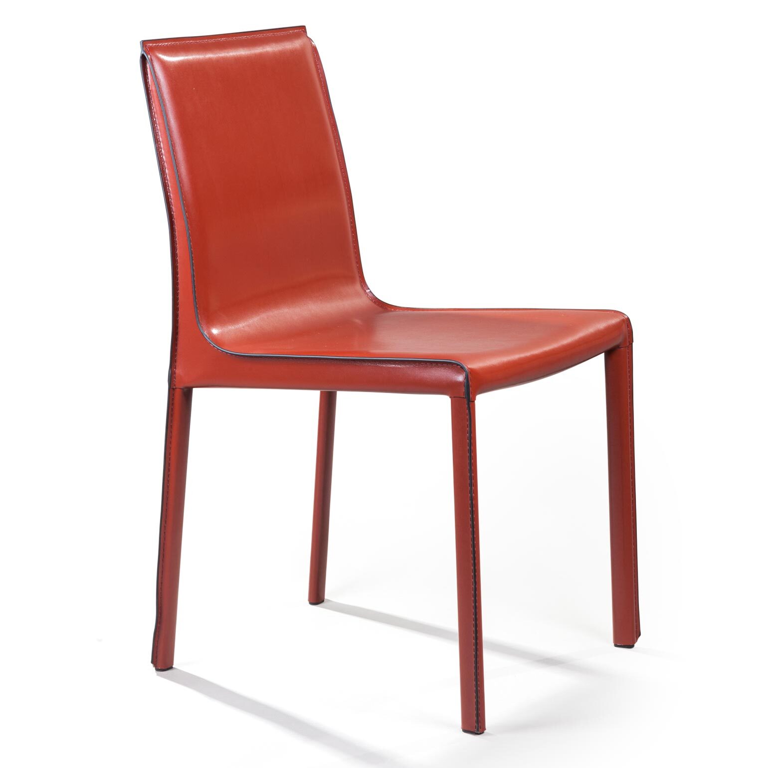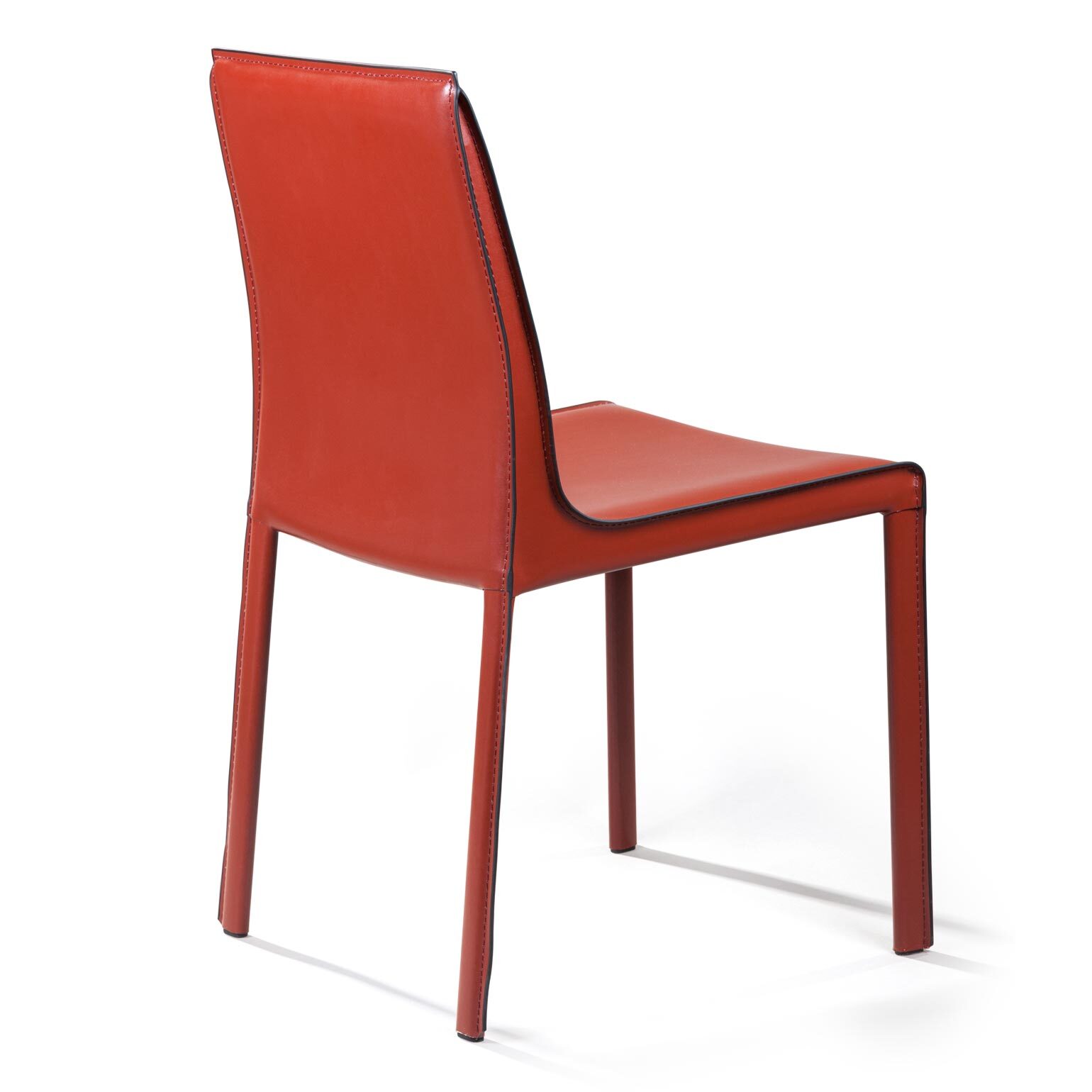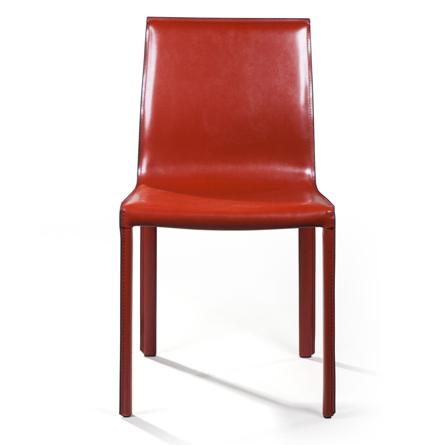 Крепкие металлические ножки скрыты под натуральной кожей такого же цвета, как и сам стул, благодаря этому создается лаконичный образ единого целого. На ножках предусмотрены специальные пластиковые накладки, которые придают стулу дополнительную устойчивость и защищают пол от царапин.