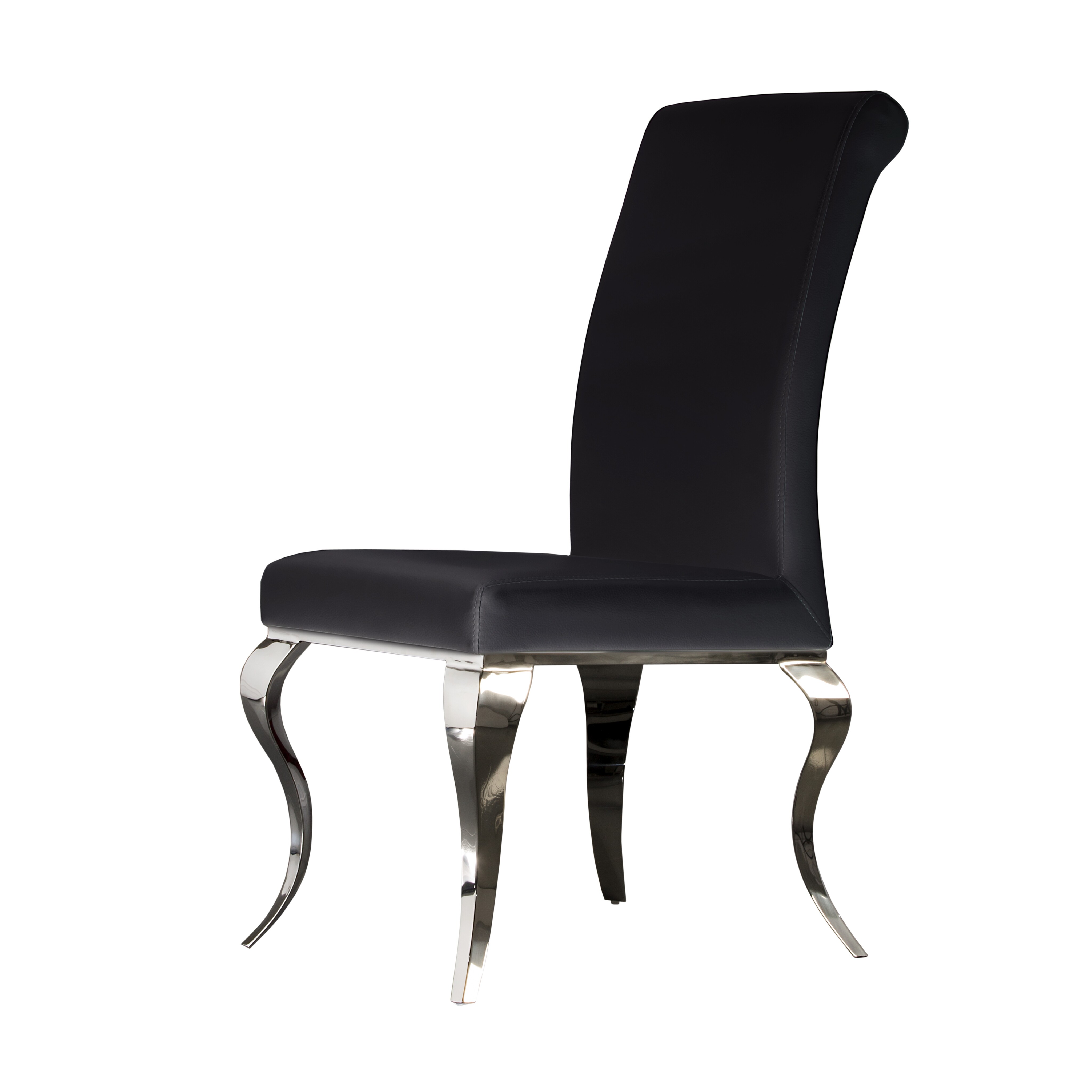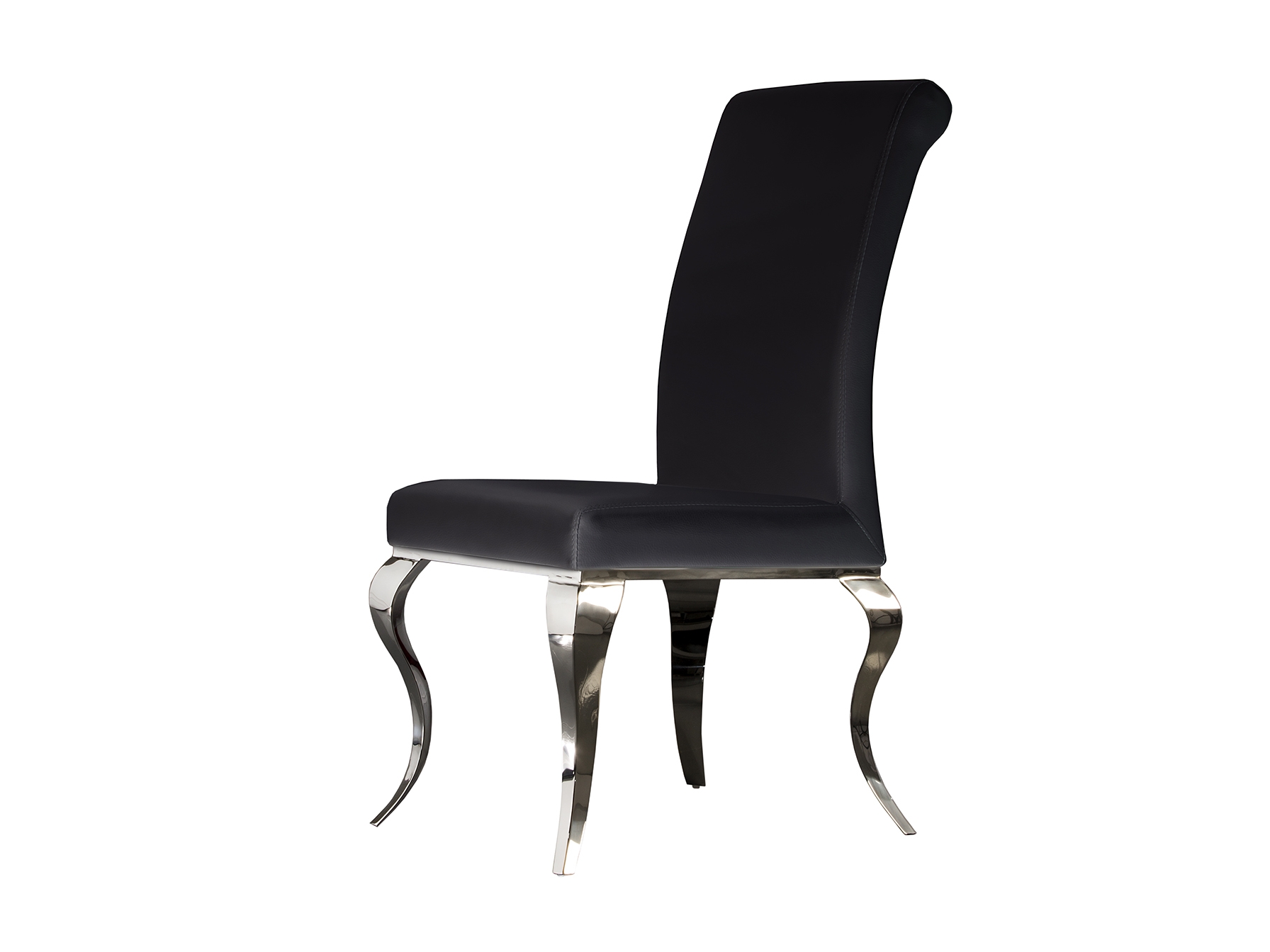 Стул из нержавеющей стали, обивка из искусственной кожи чёрного цвета..